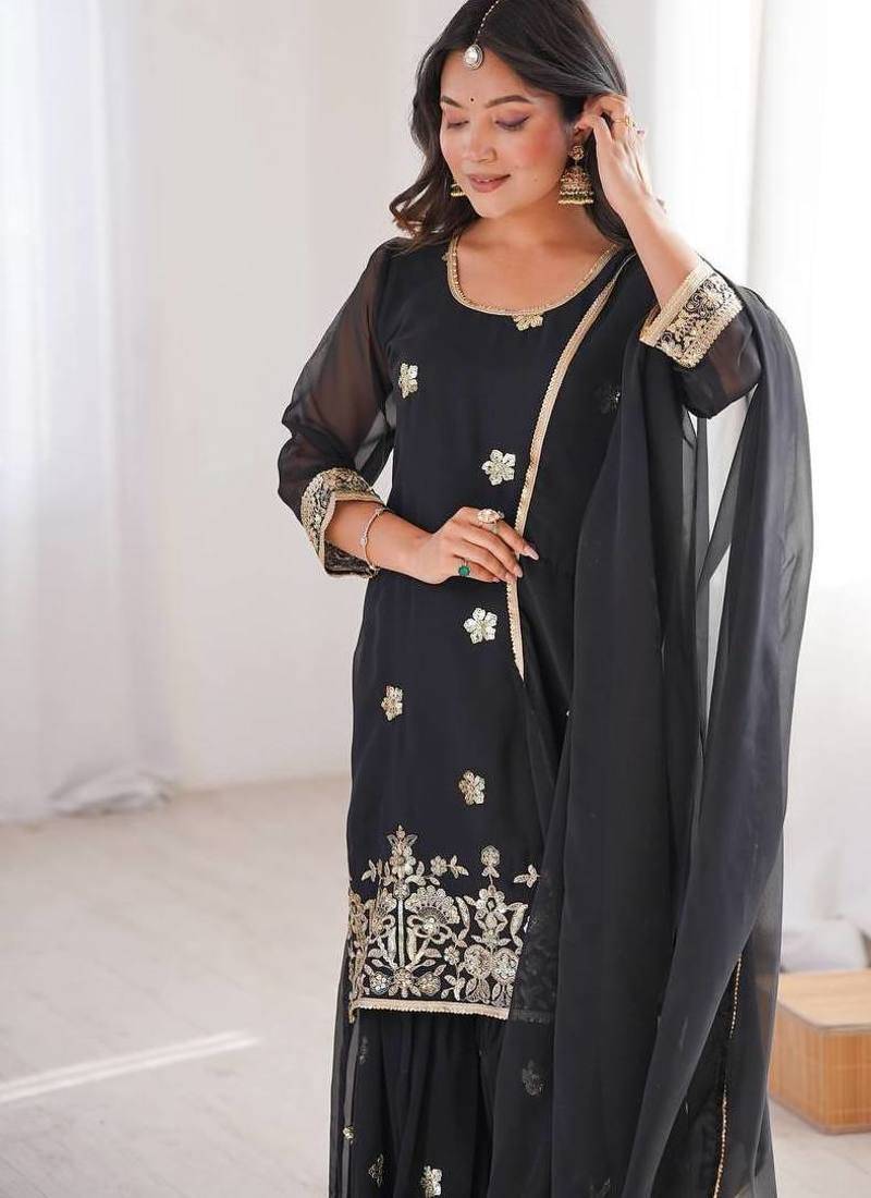 Product Name Gergette Embroidery Work Black Readymade Salwar Suit