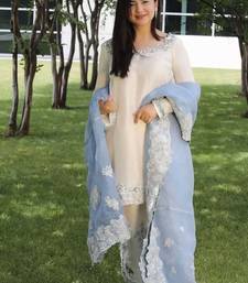 | Product Name | Designer Sequin Suit Set – Off White Roman Glass With Ice Blue Organza Dupatta | |