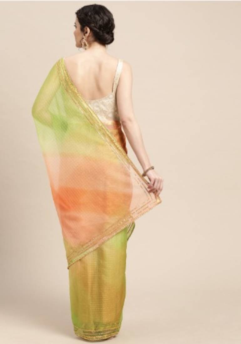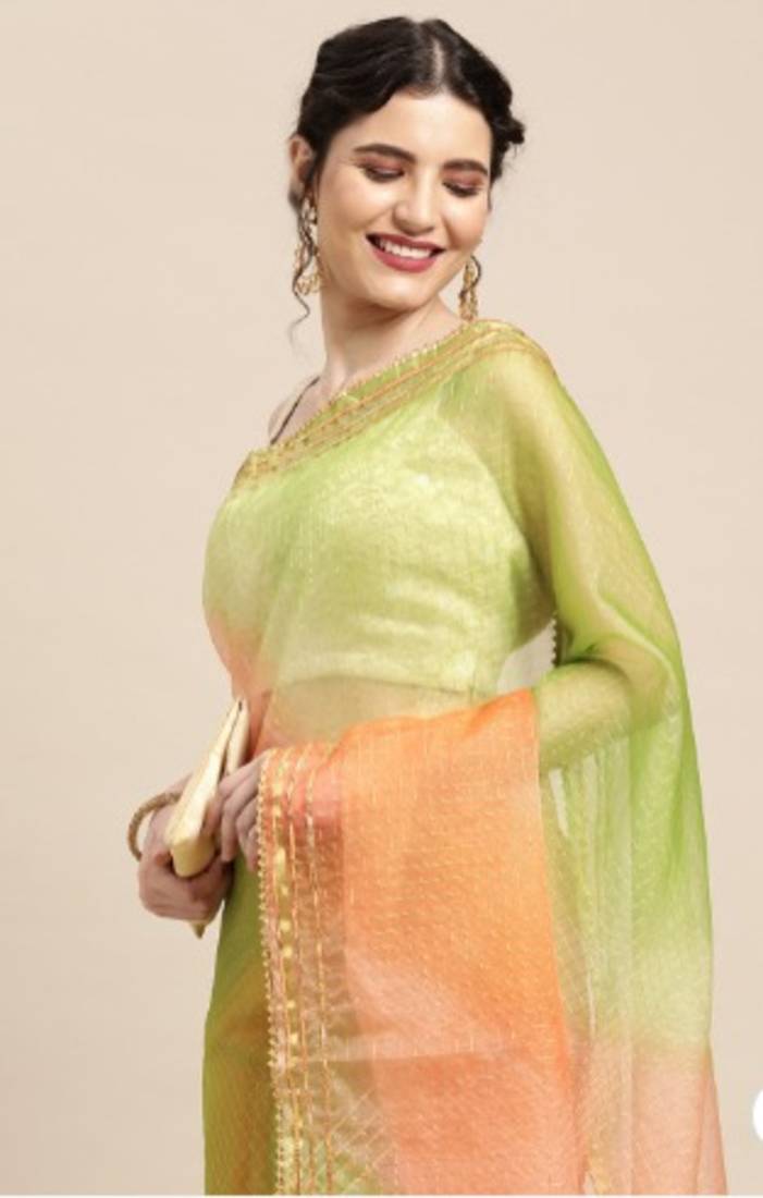 | Product Description | Bring Refined Tradition To Your Wardrobe With Green Shaded Lace Border & Zari Checks Organza Saree Crafted To Look Elegant In Every Light. |