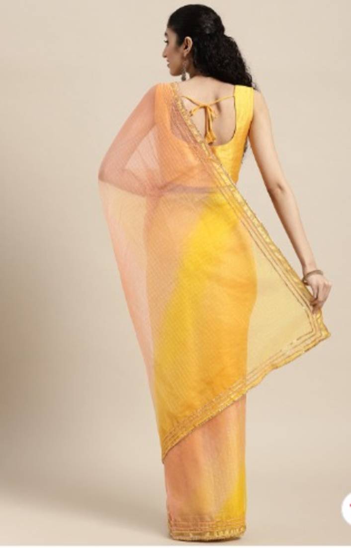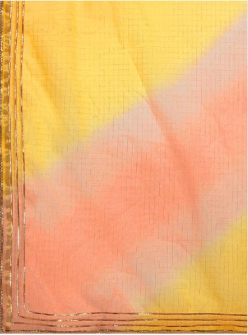 | Product Name | Peach Shaded Lace Border & Zari Checks Organza Saree | |