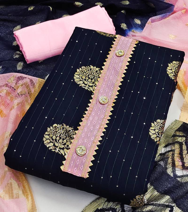 Banarasi buta sequin top with cotton bottom and saboori print dupatta set dress material unstitched