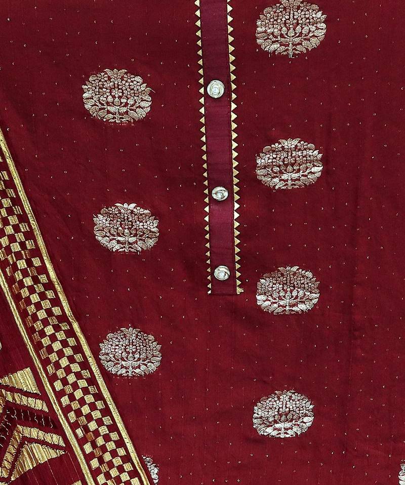 | • | Kameez | : | Color- Maroon / Fabric- Banarasi Cotton |
