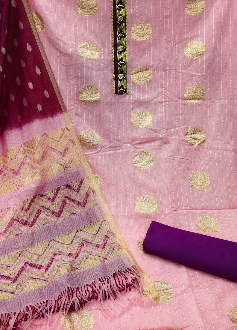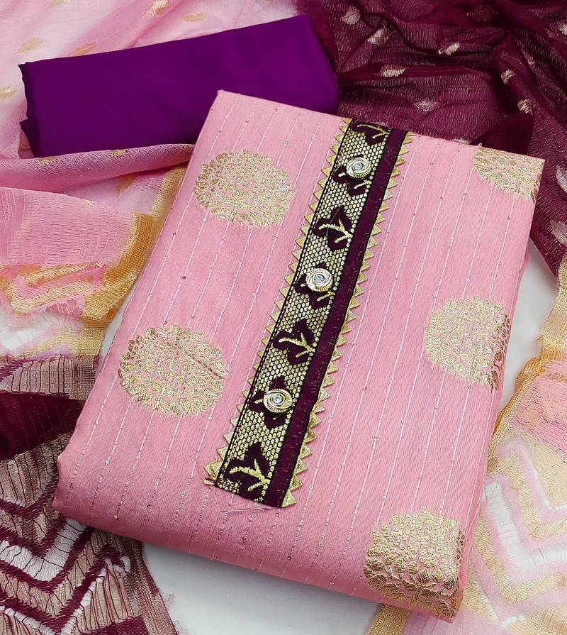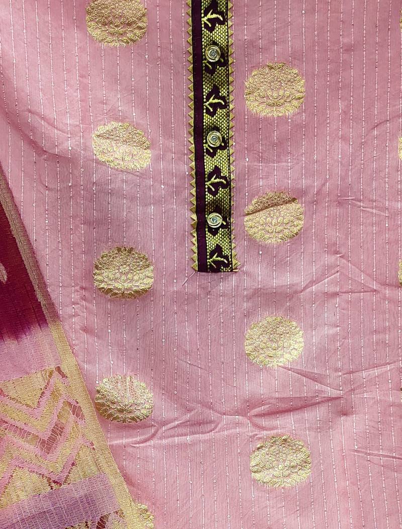 Banarasi buta sequin top with cotton bottom and saboori print dupatta set dress material unstitched