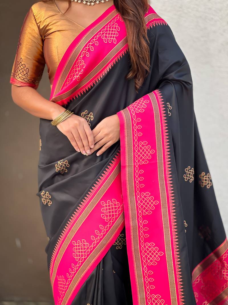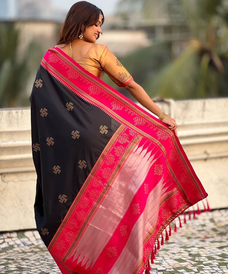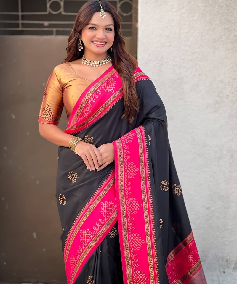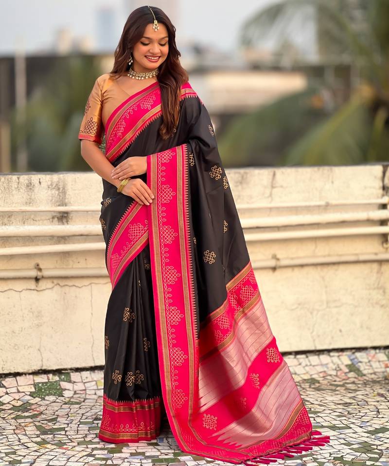 | Product Name | Black Border Traditional Butti & Geometric Zari Work Rich Woven Pallu Design | |
