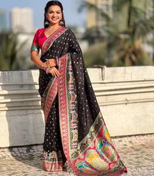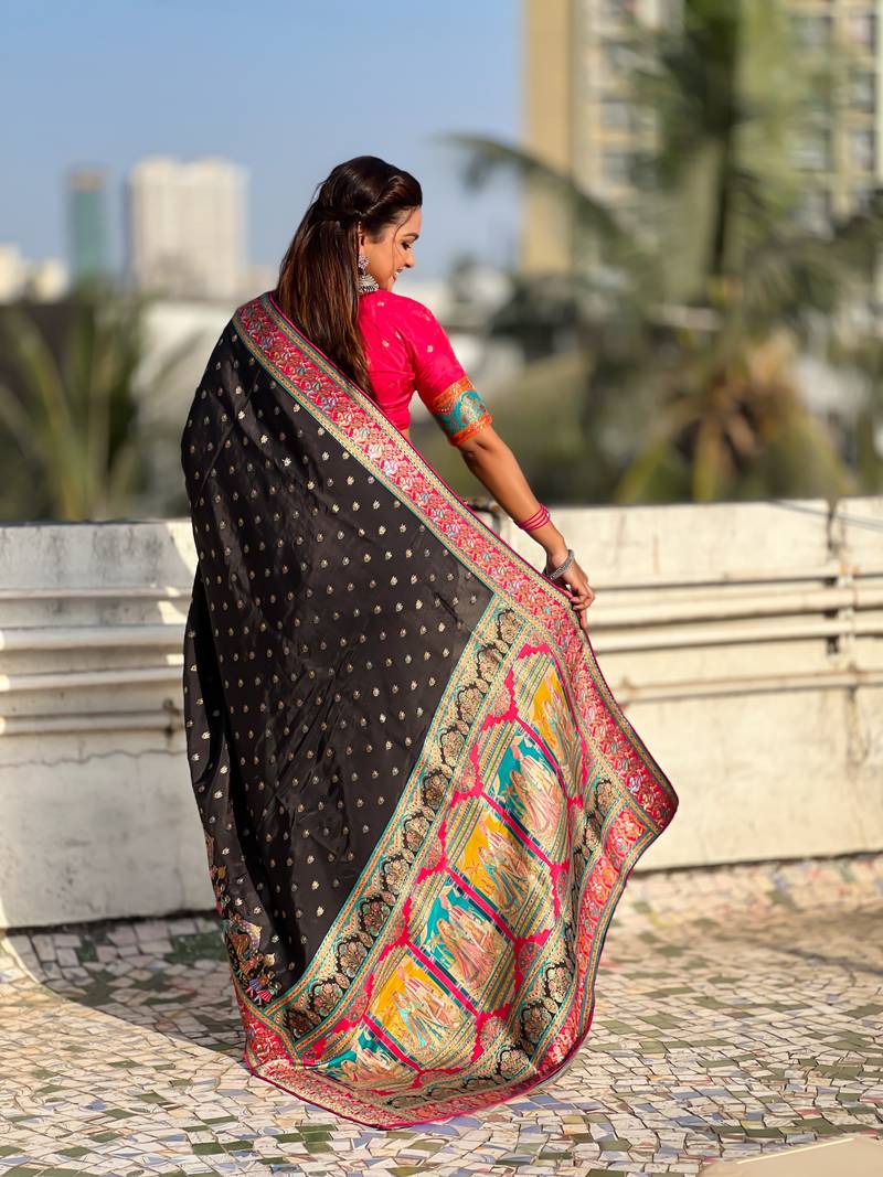 Black silk blend saree with traditional multicolor woven border & rich pallu | festive & party wear saree