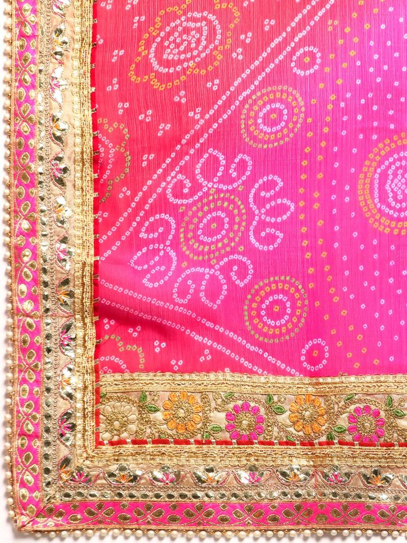 | Product Description | Bandhani Saree With Lace Border And Unstitched Blouse Piece |
