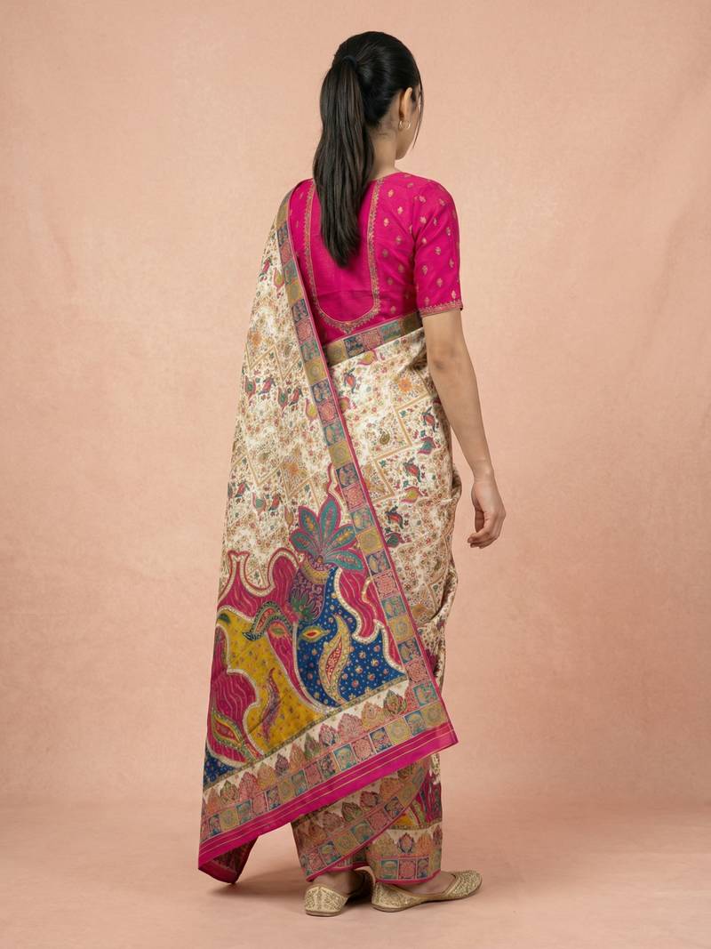 | Product Name | Cream Printed Silk Blend Saree With Multicolor Traditional Border & Paisley Pallu | Festive Ethnic Wear Saree | |