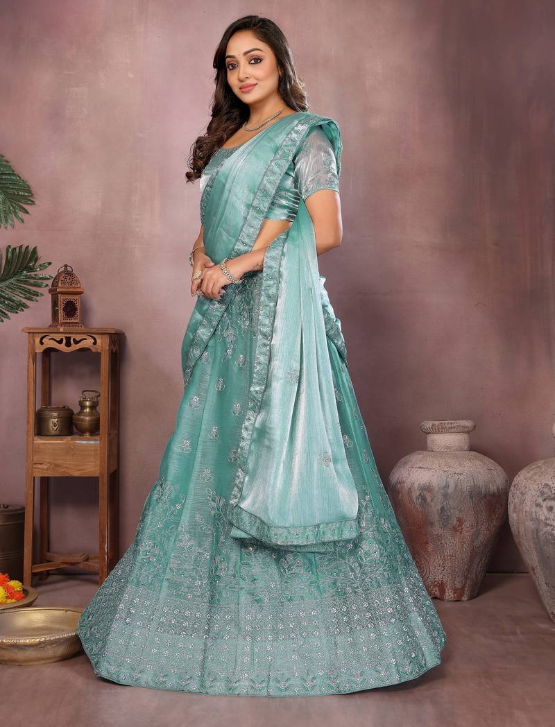 Embroidered lehenga choli with matching dupatta heavy zari work festive & wedding wear