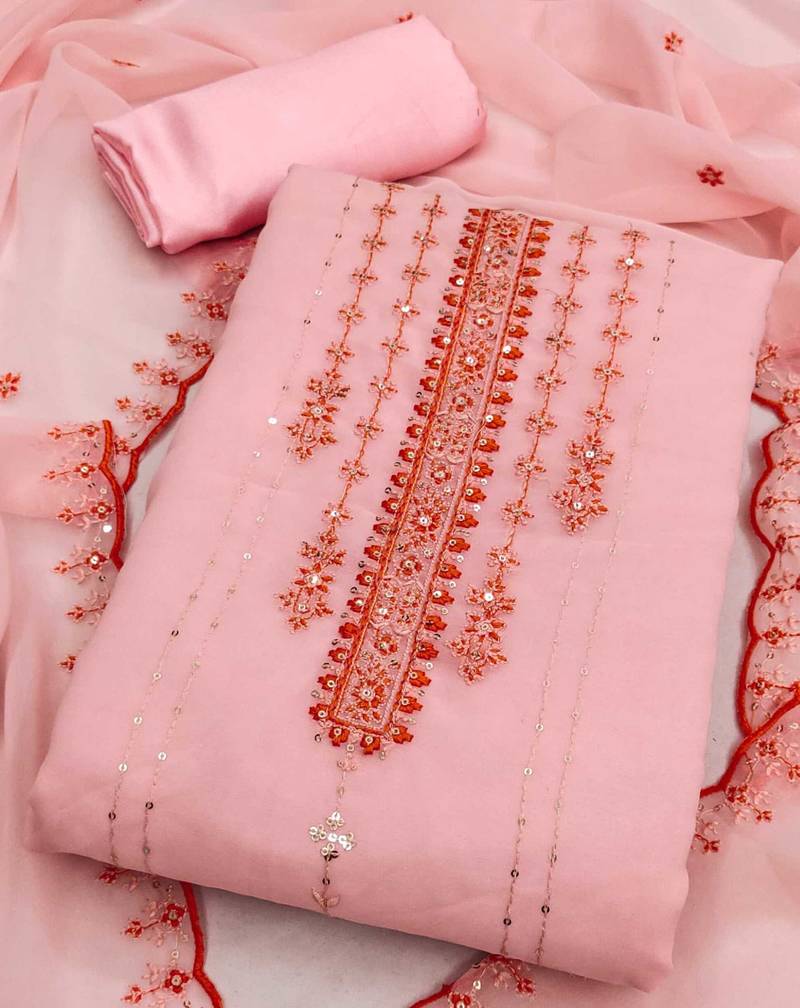 Graceful georgette top with santoon bottom salwar suit dress material unstitched