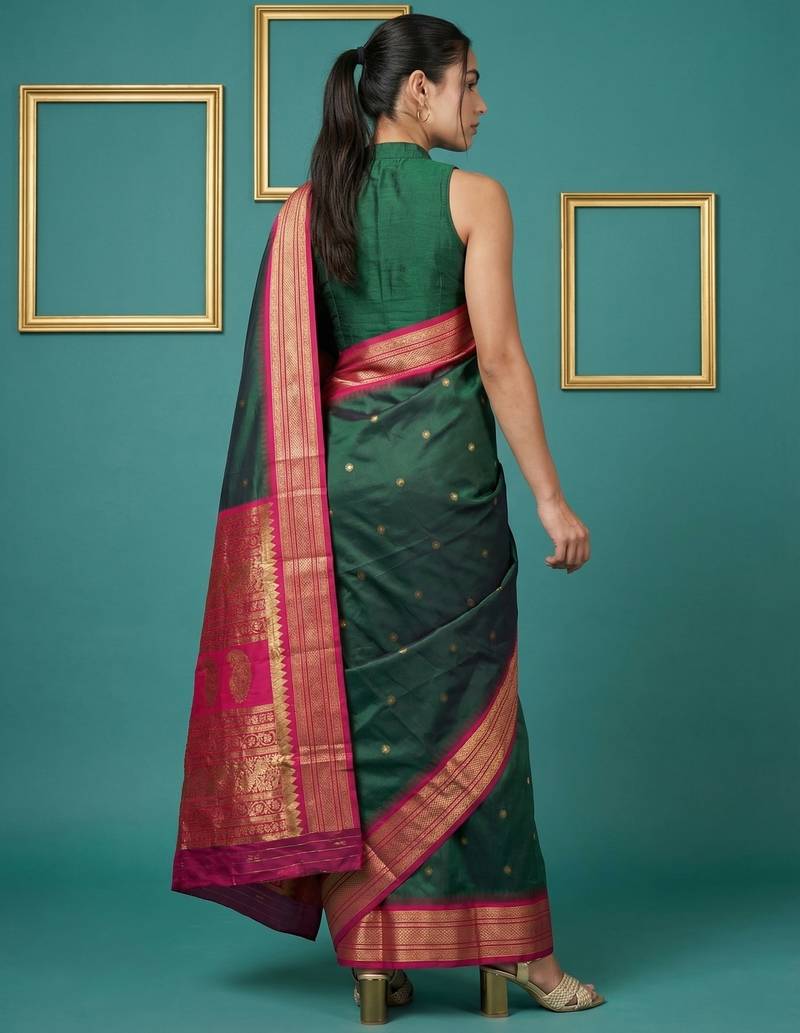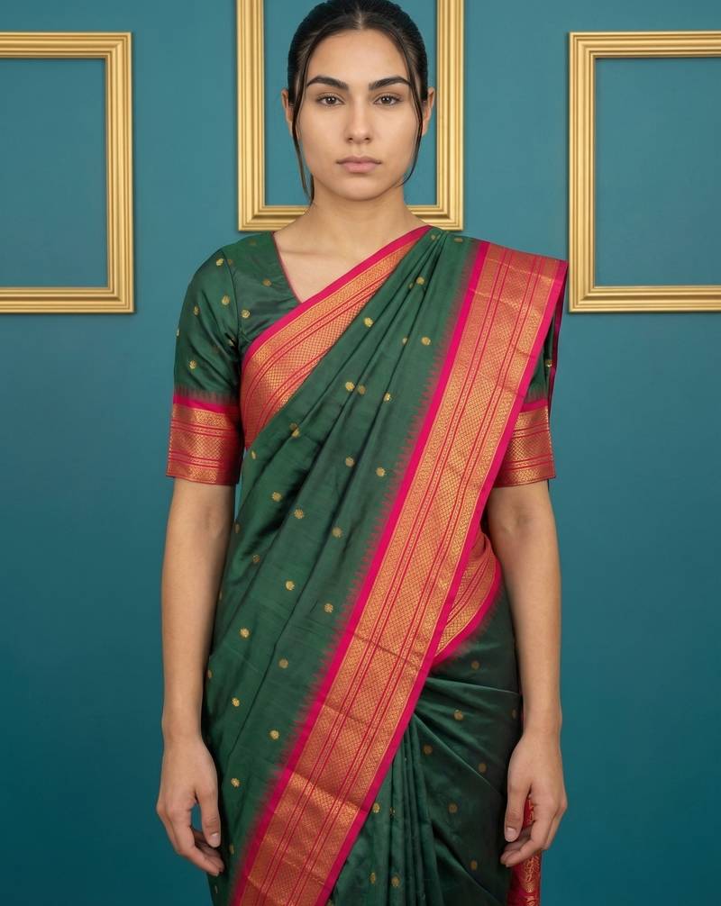 | Product Name | Green Border Woven Zari Border & Buti Work Silk Blend Fabric Traditional Festive Style | |