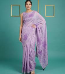 Lavender muga cotton resham weaving pencil art saree with matching blouse piece