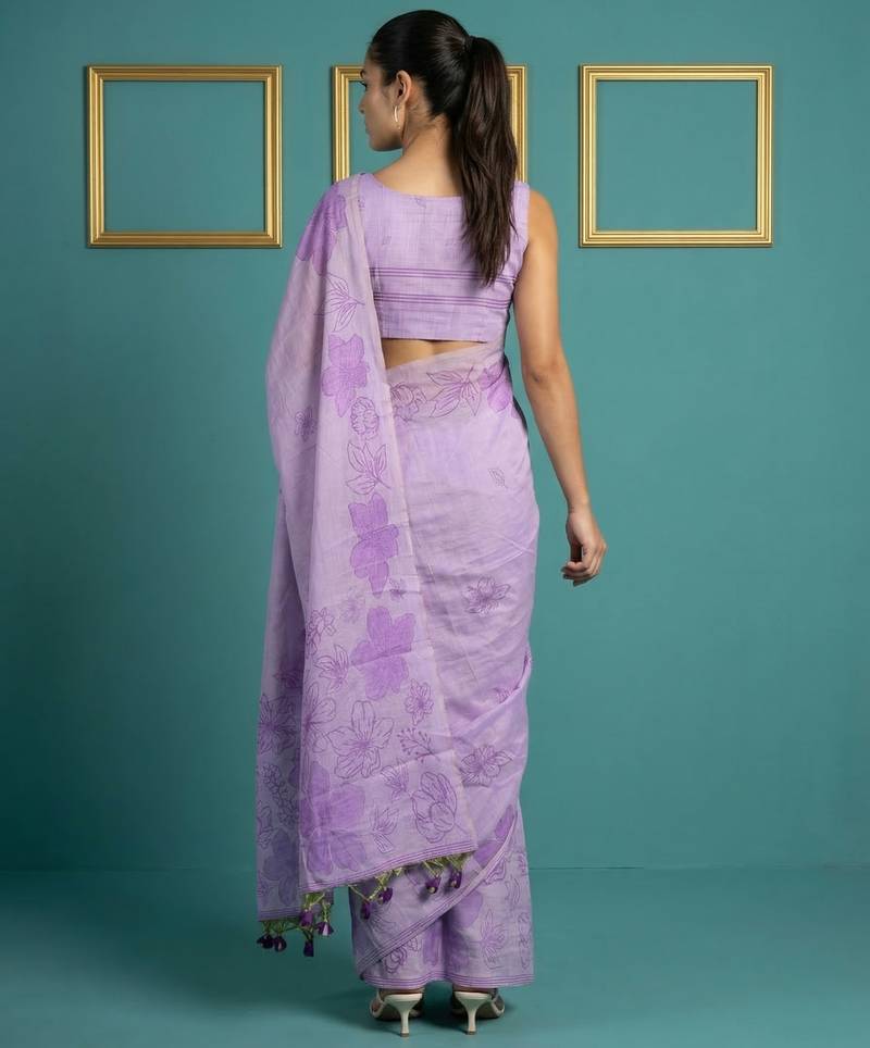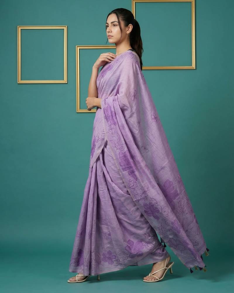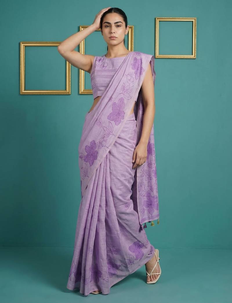 | • | Saree | : | Color- Lavender / Fabric- Cotton Silk |