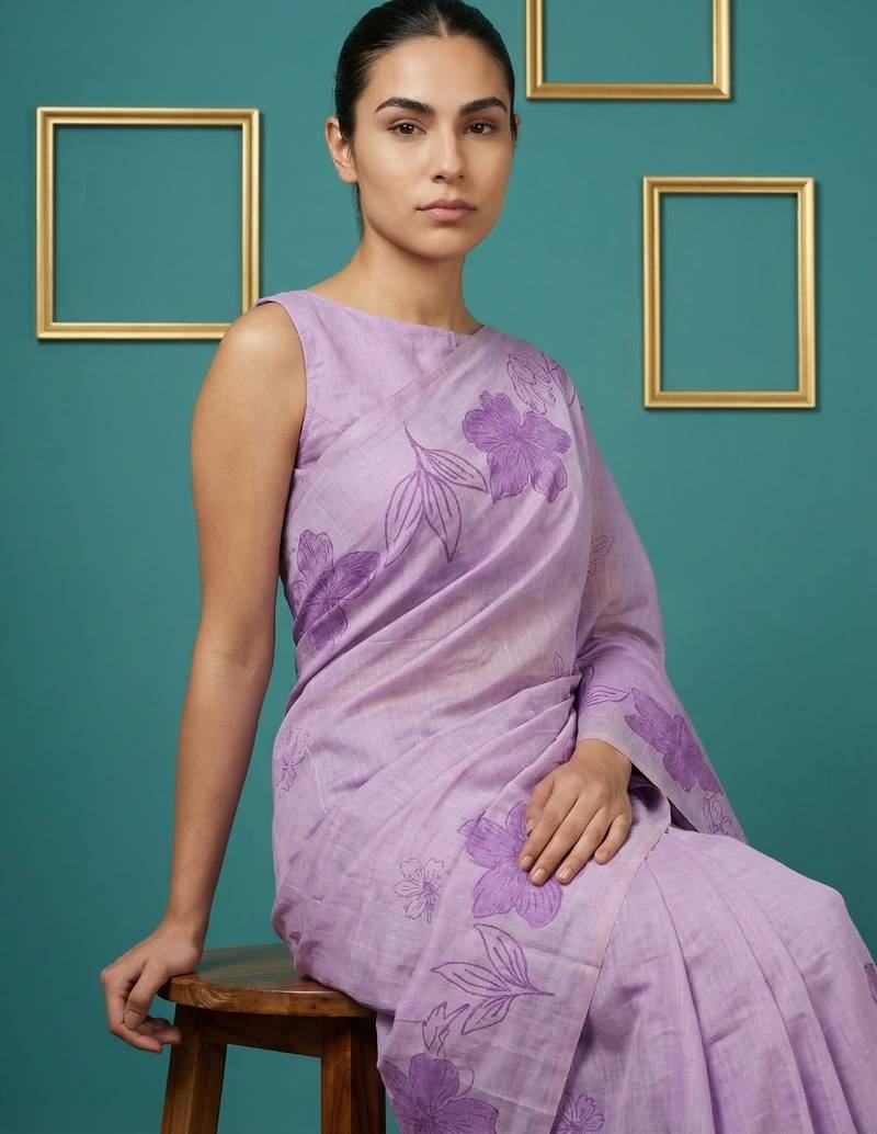 | Product Name | Lavender Muga Cotton Resham Weaving Pencil Art Saree With Matching Blouse Piece | |