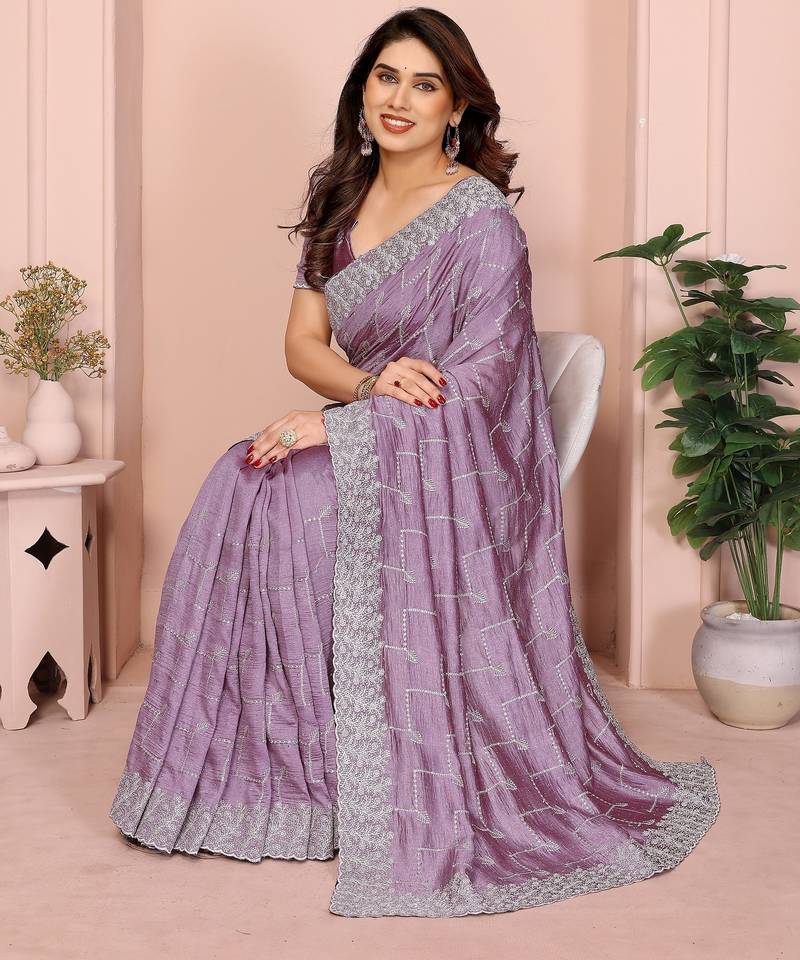 | Product Name | Lavender Vichitra Silk Saree With Sequence Embroidery Work And Matching Blouse Piece | |
