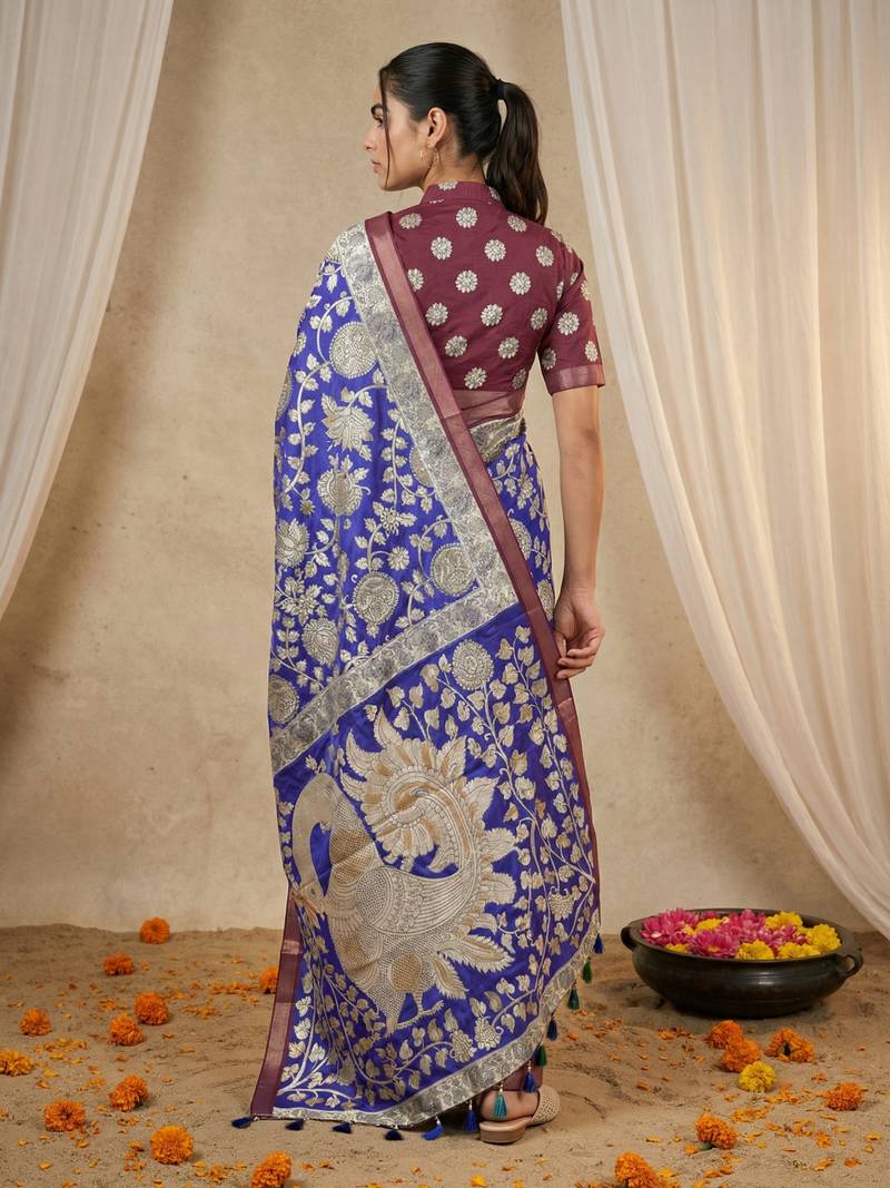 | Product Name | Light Blue Heavy Woven Zari Floral & Traditional Motifs Work Silk Blend Fabric Traditional Grand Festive Style | |