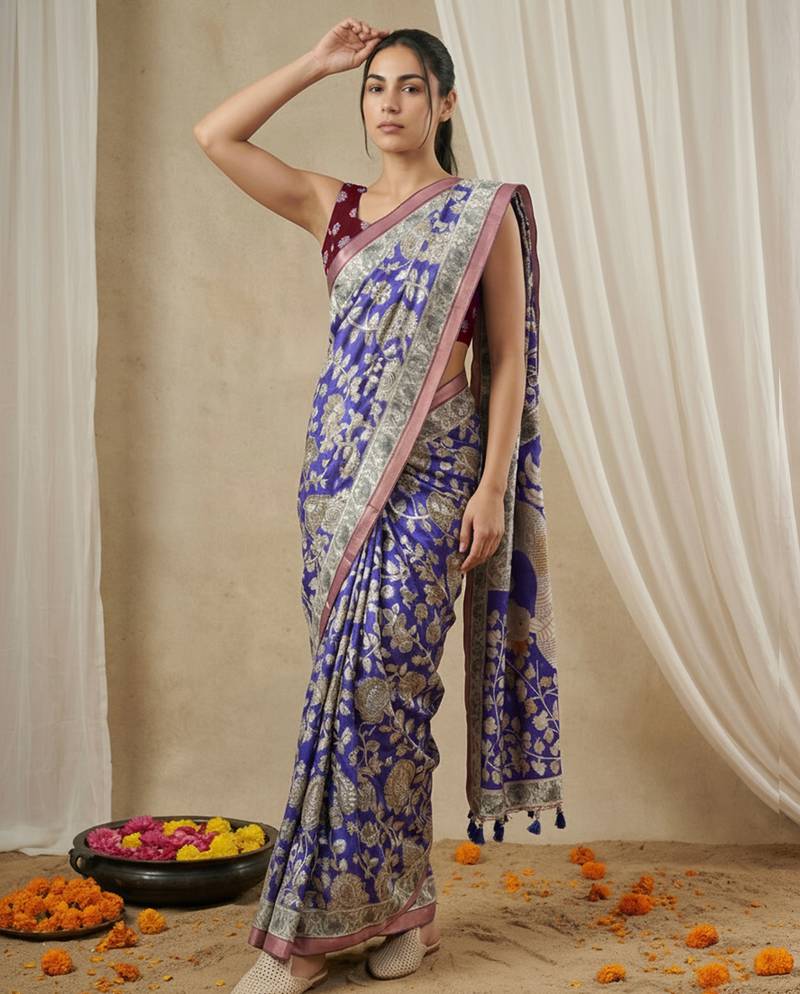 | Product Description | This Luxurious Saree Is Crafted From Premium Silk Fabric, Offering A Rich Texture With A Smooth And Regal Drape. It Features Heavy Gold Zari Woven Floral And Traditional Motifs All Over, Creating A Grand And Opulent Look. The Intricately Designed Border And Pallu Add Depth And Richness, Making It Perfect For Weddings, Bridal Wear, And Grand Festive Occasions. The Detailed Craftsmanship Enhances Its Royal Appeal. Paired With A Matching Blouse Piece, This Saree Creates A Stunning And Majestic Ethnic Ensemble. |