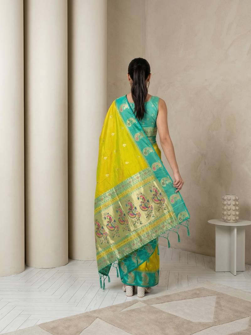 | • | Saree | : | Color- Light Lime / Fabric- Paithani Silk |