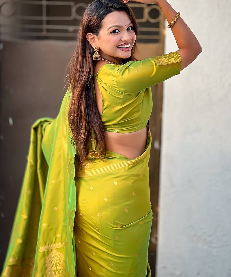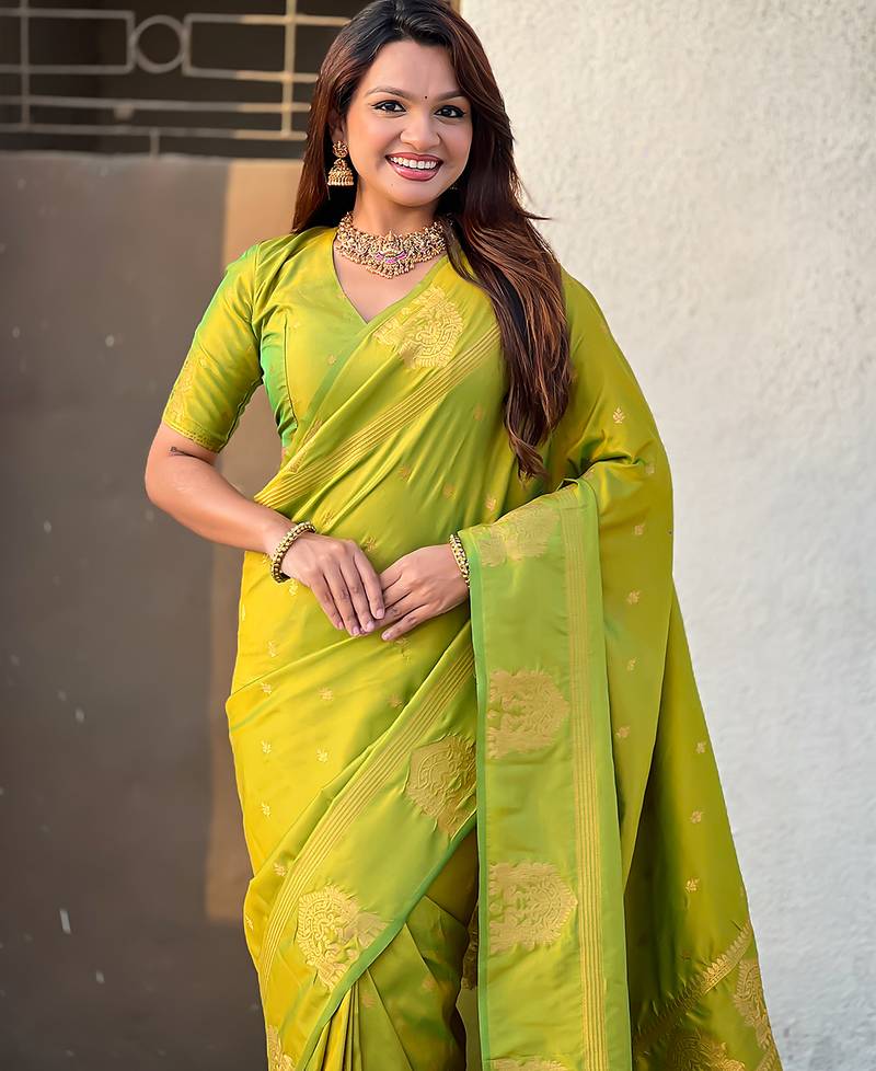 | Product Name | Light Lime Silk Blend Saree With Golden Zari Motifs & Rili Woven Pallu | Tliditional Festive Wear Saree | |