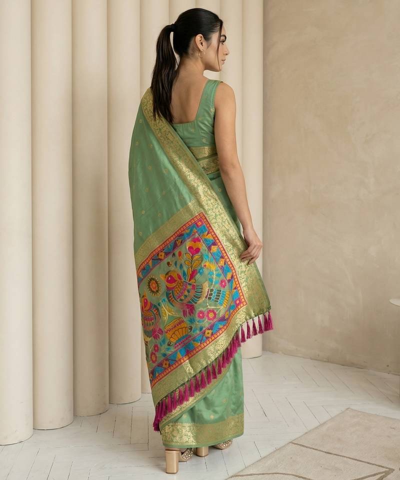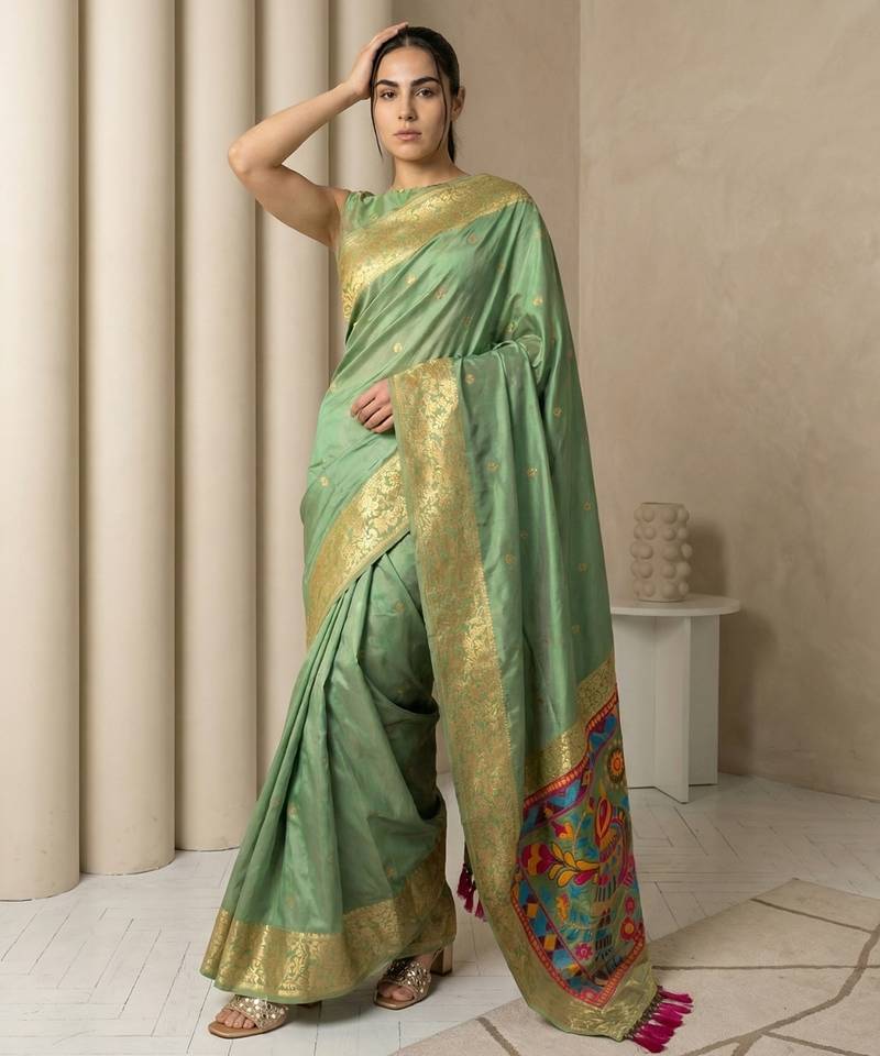 | Product Name | Light Olive Pallu Woven Zari Buti & Traditional Motifs Work Silk Blend Fabric Traditional Festive Style | |
