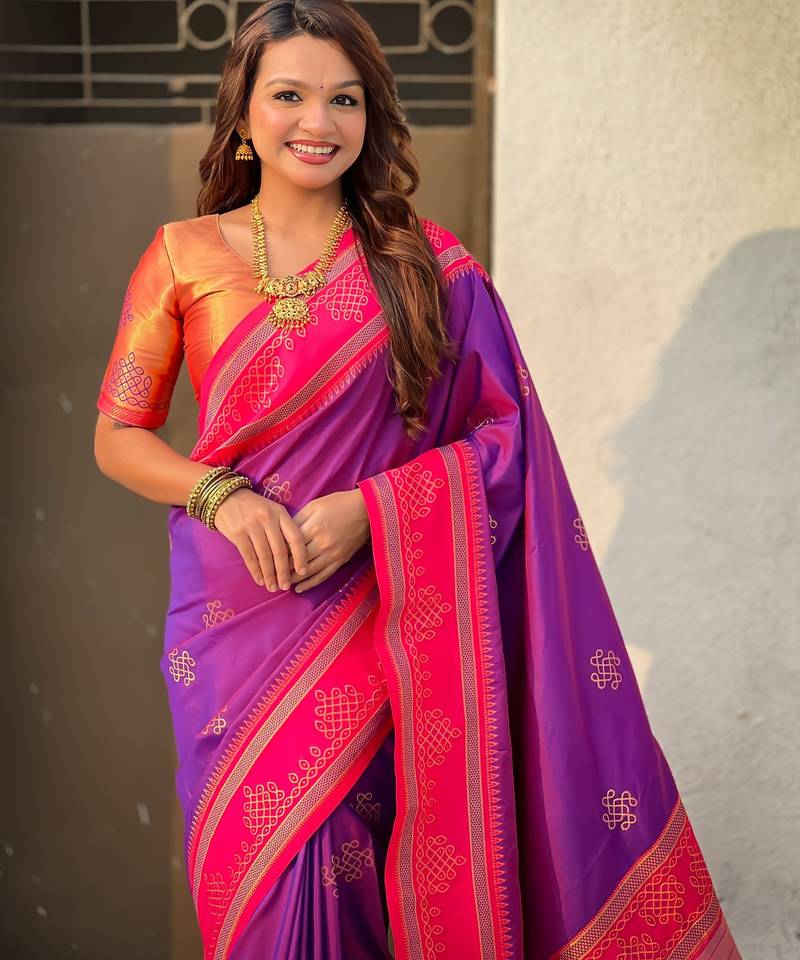 | Product Name | Light Purple Border Traditional Butti & Geometric Zari Work Rich Woven Pallu Design | |