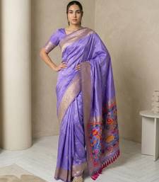 Light purple pallu woven zari buti & traditional motifs work silk blend fabric traditional festive style