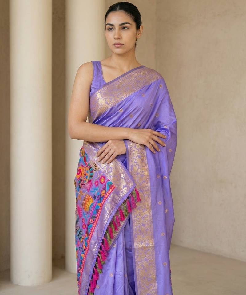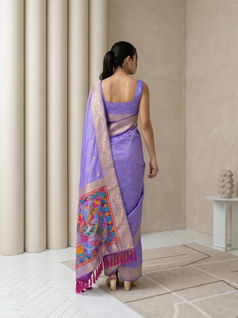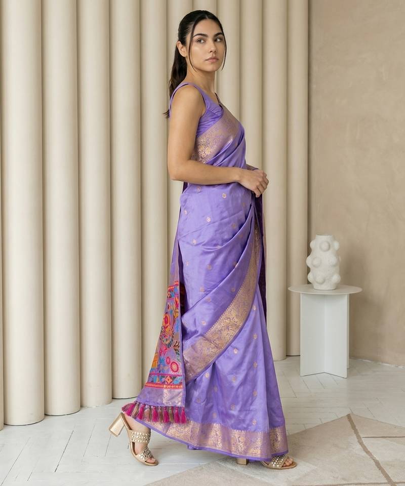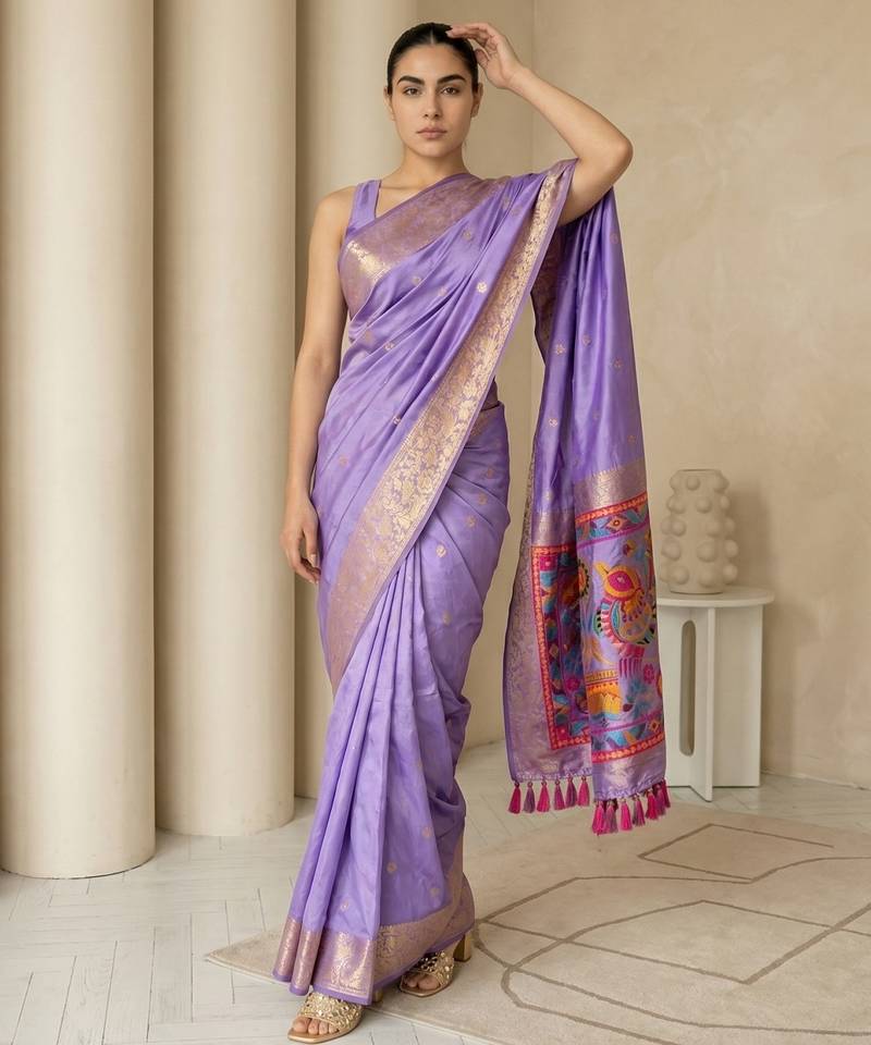 | Product Name | Light Purple Pallu Woven Zari Buti & Traditional Motifs Work Silk Blend Fabric Traditional Festive Style | |