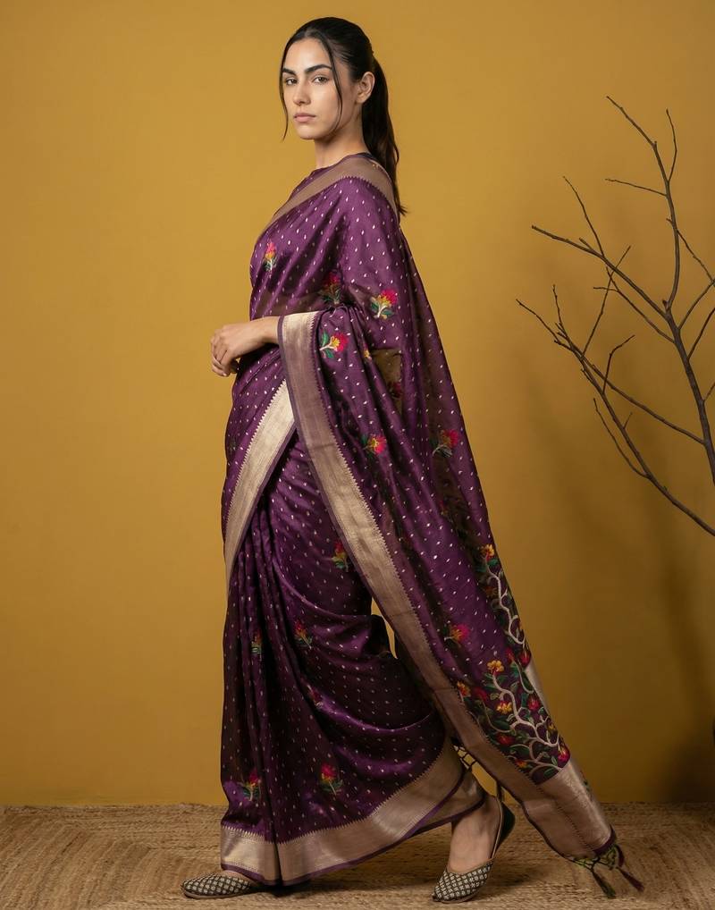 | Product Name | Light Purple With Multicolor Accents Woven Zari Small Buti & Floral Border Work | |