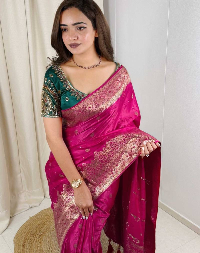 | Product Name | Magenta Banarasi Satin Silk Zari Weaving Saree With Embroiderd Blouse Piece | |