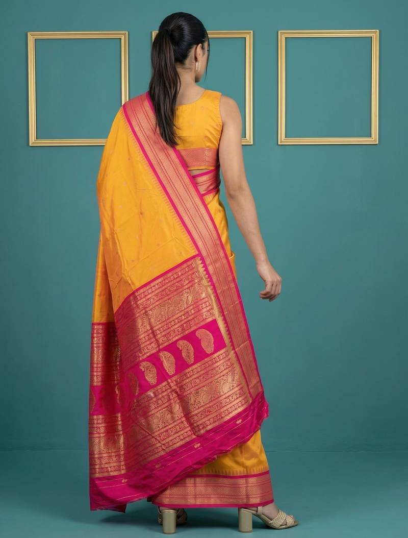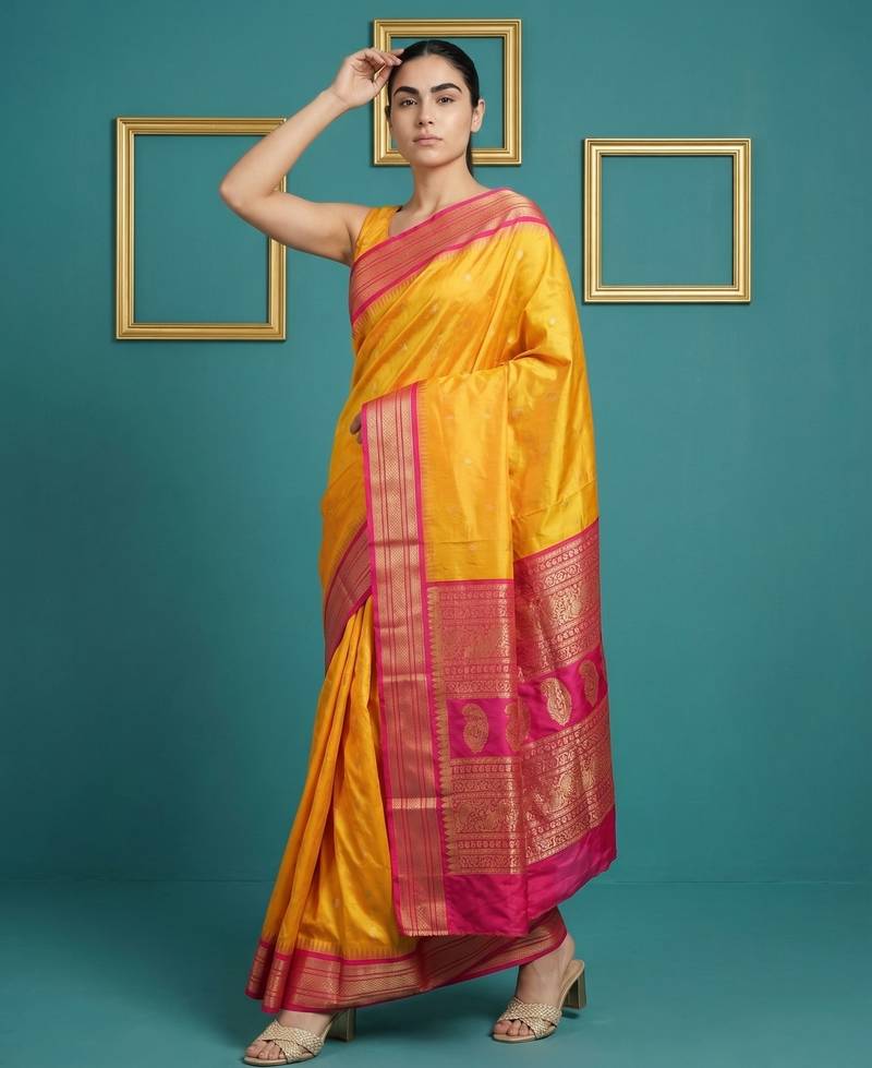 | Product Name | Mustard Border Woven Zari Border & Buti Work Silk Blend Fabric Traditional Festive Style | |