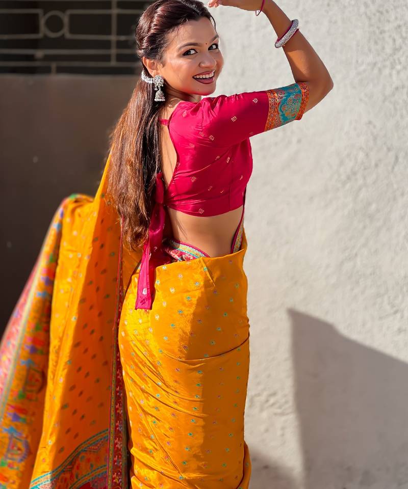 | Product Name | Mustard Silk Blend Saree With Traditional Multicolor Woven Border & Rich Pallu | Festive & Party Wear Saree | |