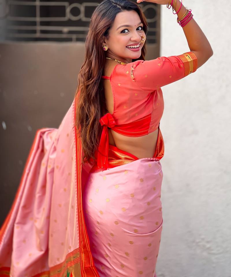 | • | Saree | : | Color- Peach / Fabric- Silk Blend |