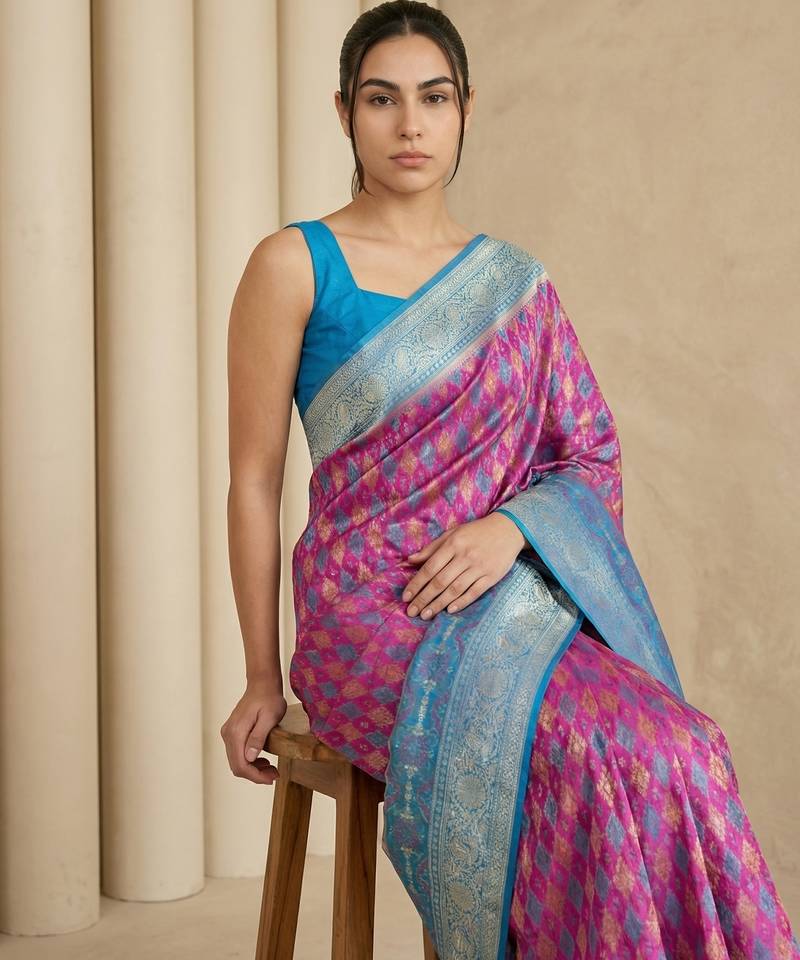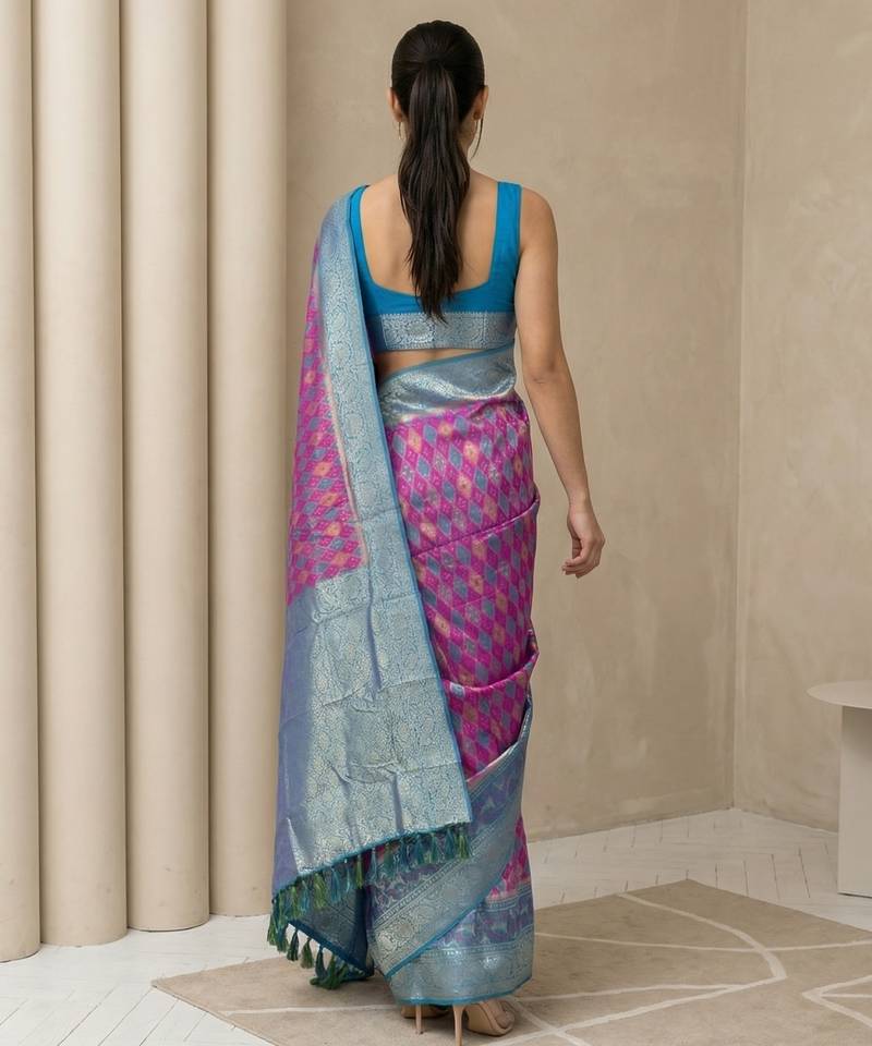 | Product Name | Pink Geometric Diamond Weave Pattern Rich Zari Woven Border & Pallu Silk Blend Fabric Elegant Festive & Traditional Wear | |