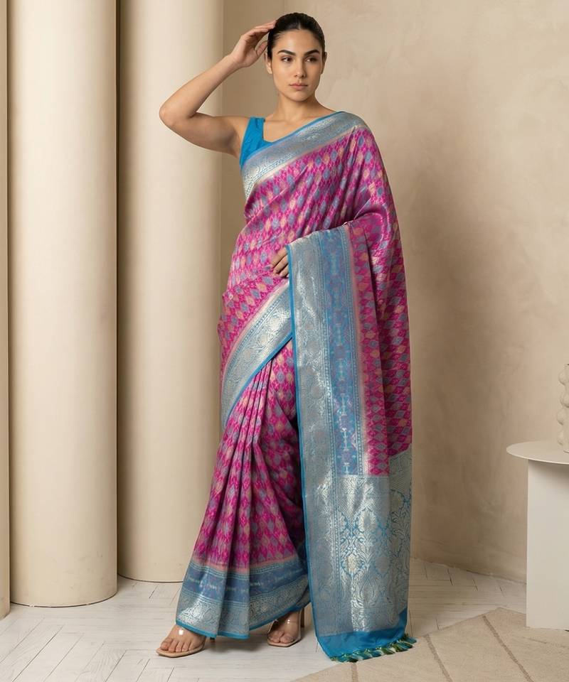 | Pattern | Contrast Rich Pink Border & Pallu | |