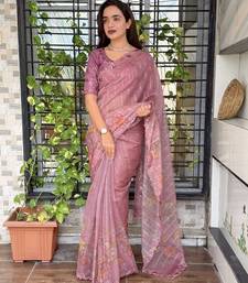 Pink organza zari weaving embroiderd saree with embroiderd blouse piece