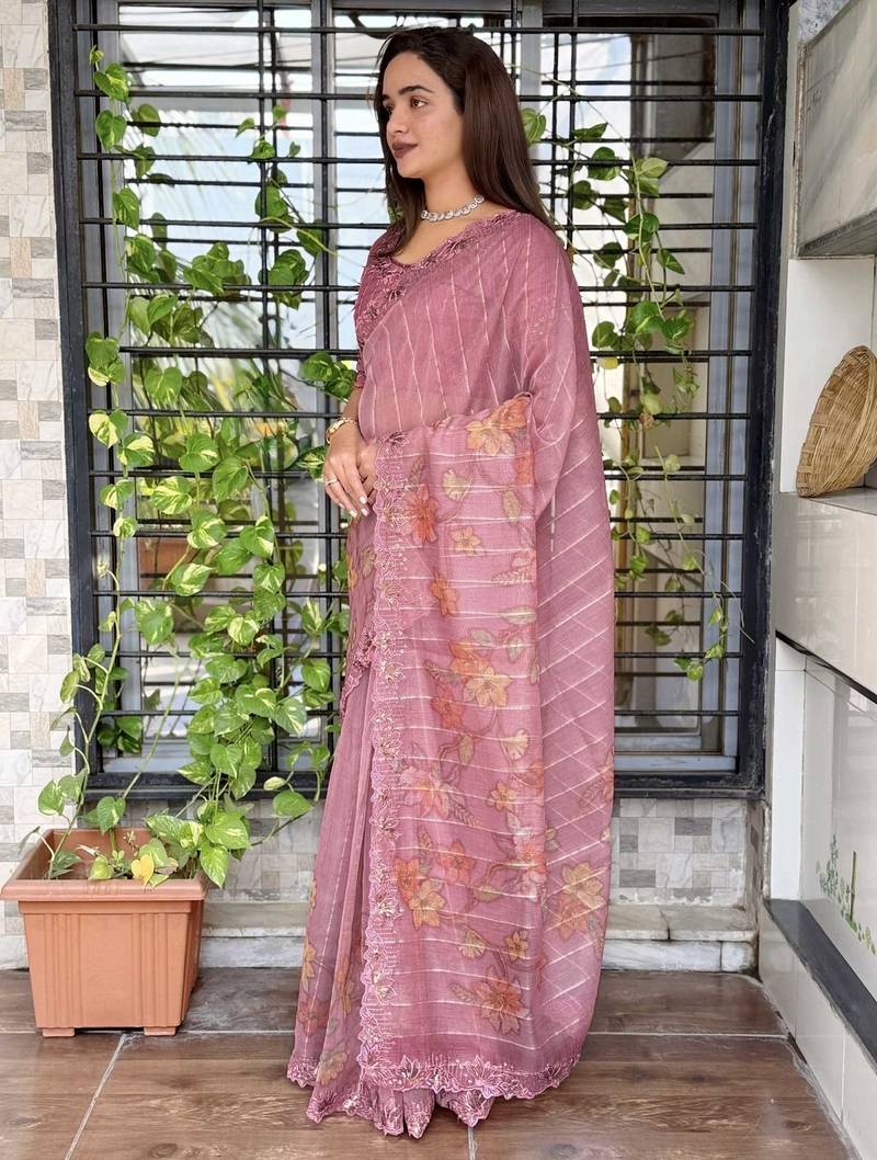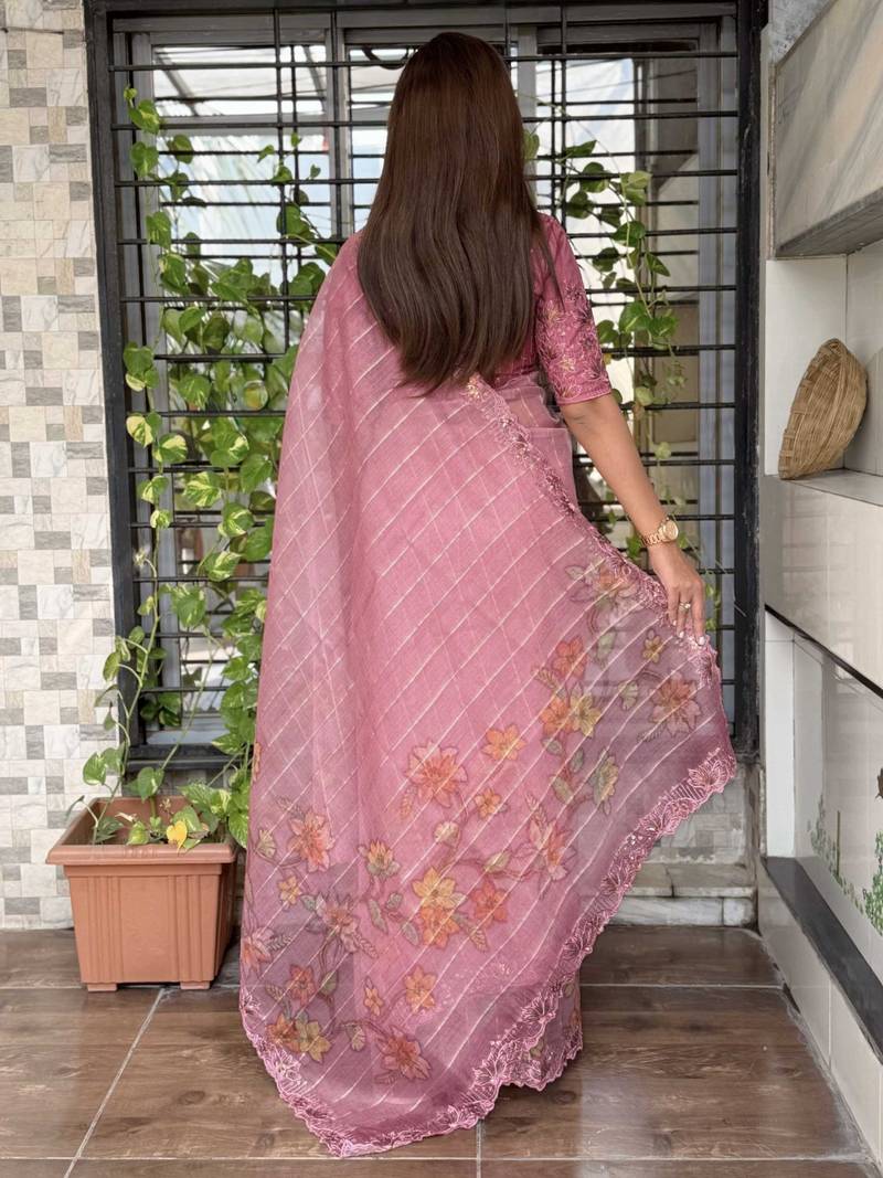 | • | Saree | : | Color- Pink / Fabric- Organza |