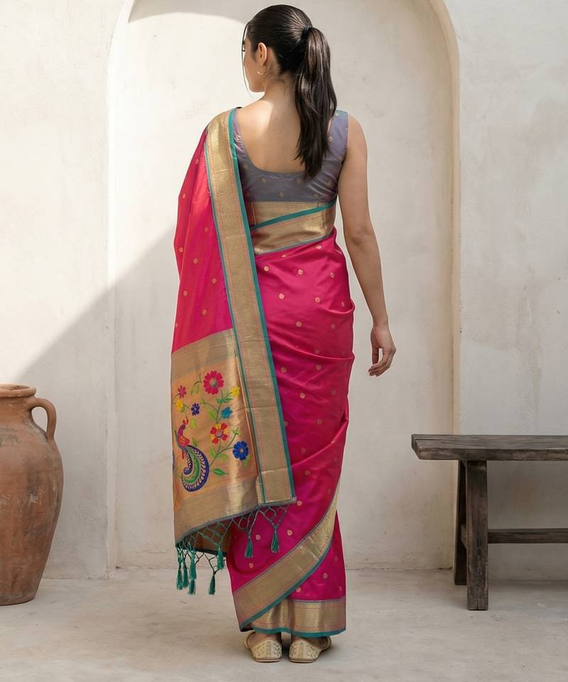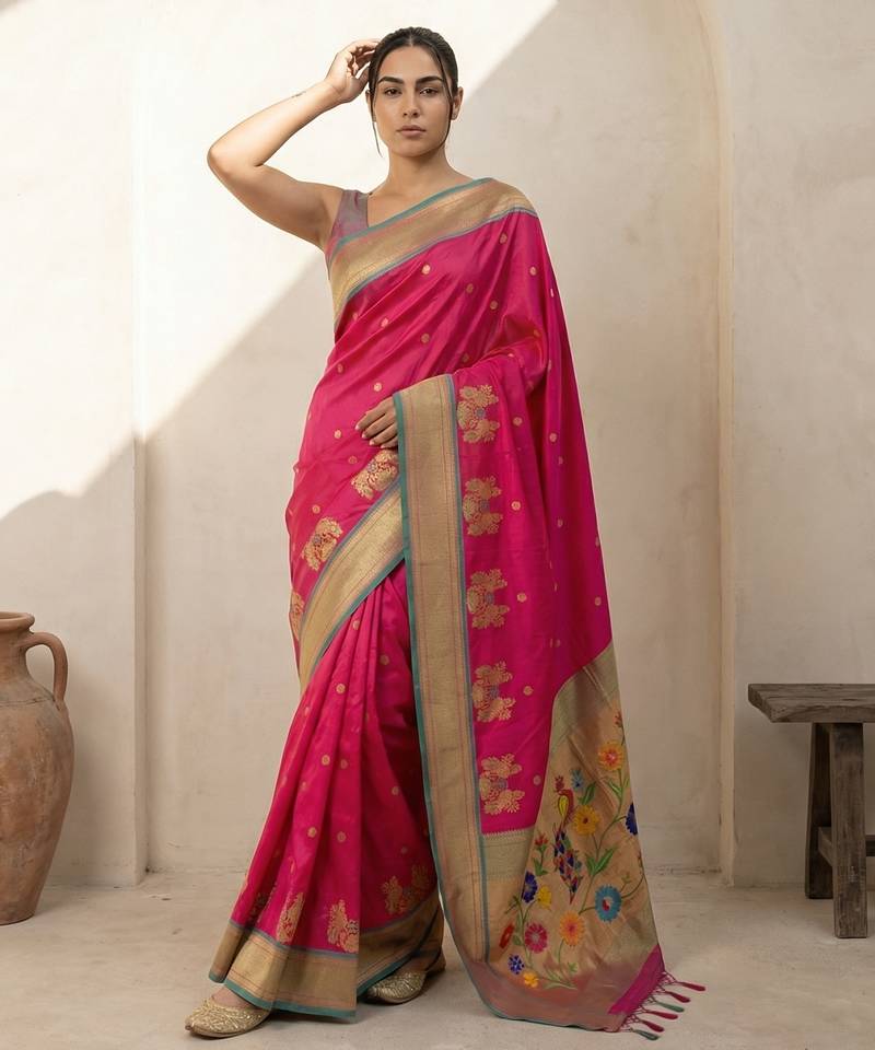| Product Name | Pink Woven Zari Buti & Floral Motifs Work Silk Blend Fabric Traditional Festive Style | |