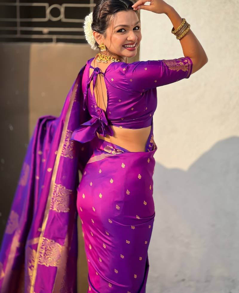 | Product Name | Purple Silk Blend Saree With Golden Zari Motifs & Ripu Woven Pallu | Traditional Festive Wear Saree | |