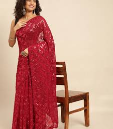Red embroidered georgette saree with blouse