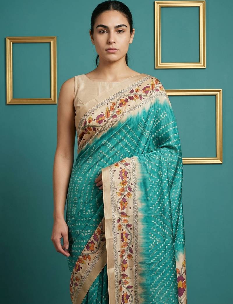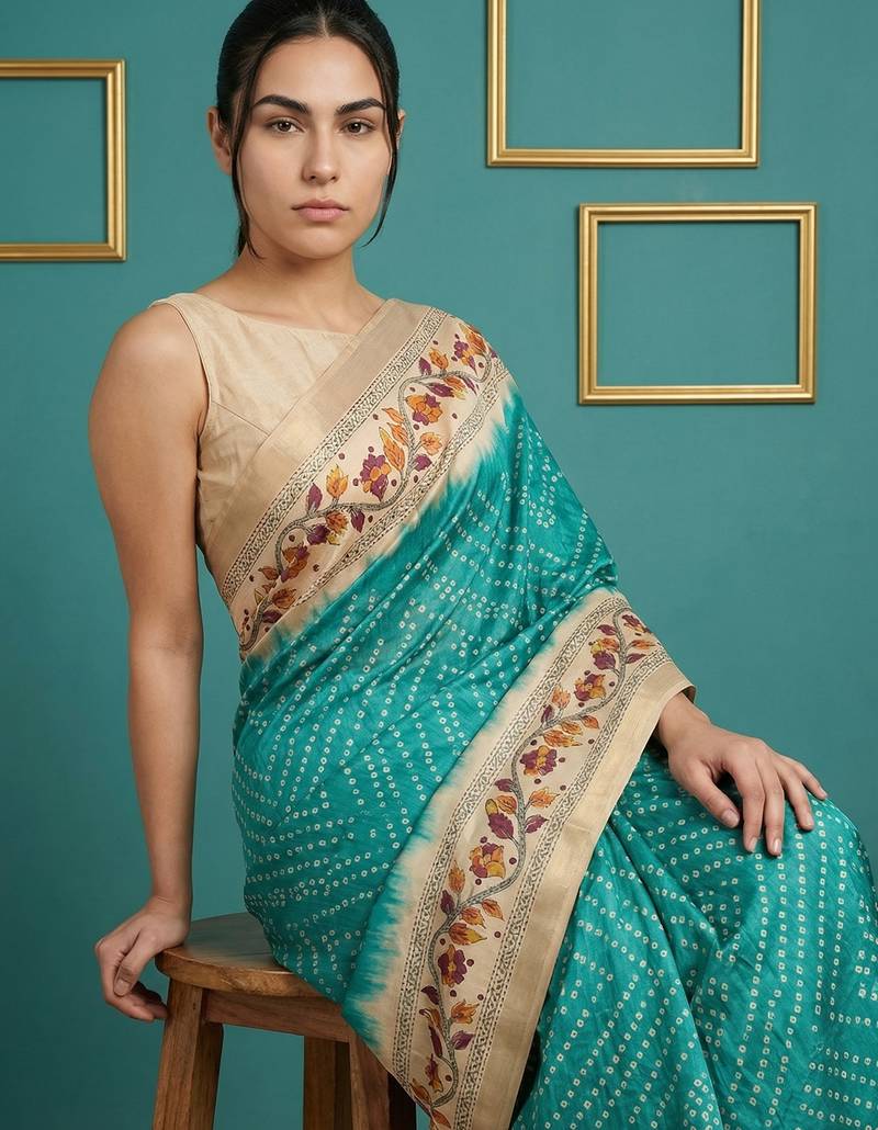 | Product Name | Sea Green Printed Silk Blend Saree With Beige Floral Border & Designer Pallu | Traditional & Festive Wear Saree | |