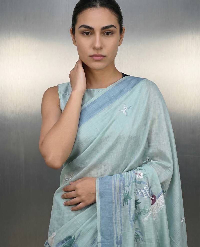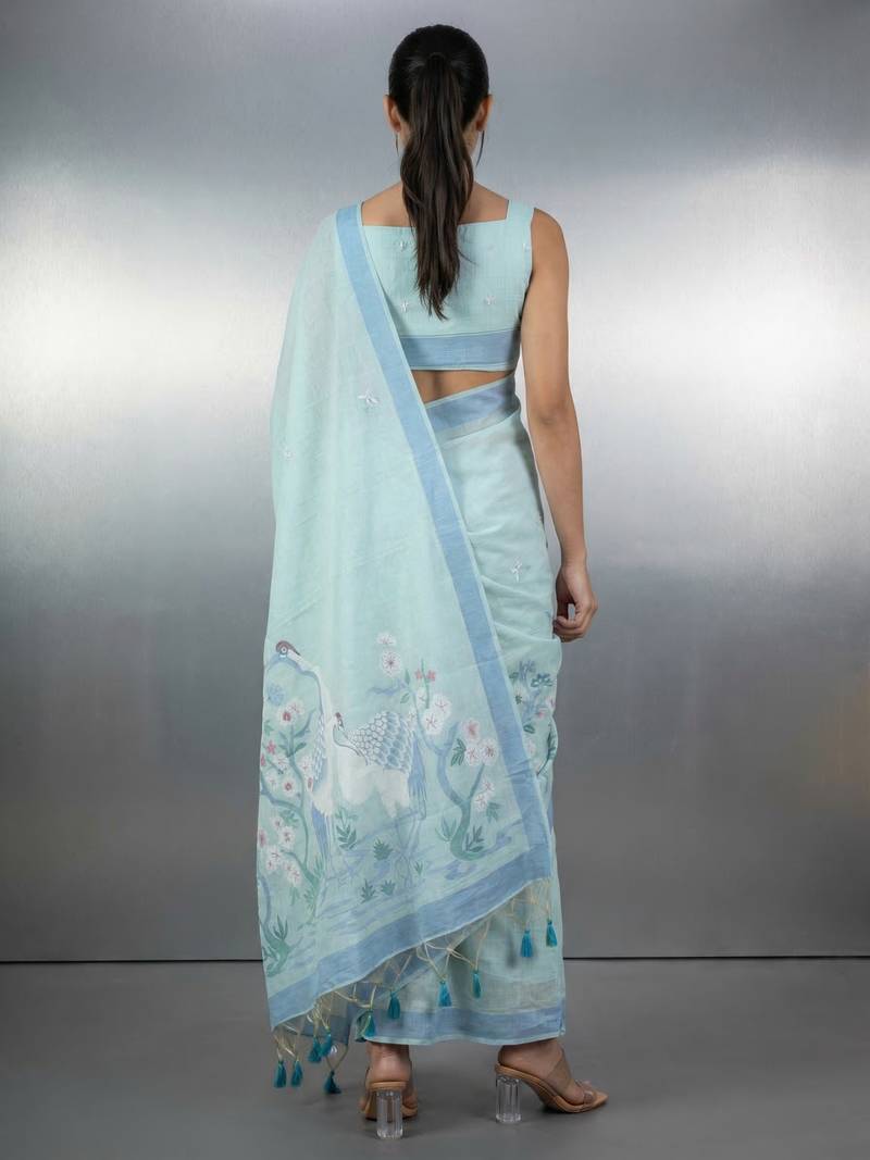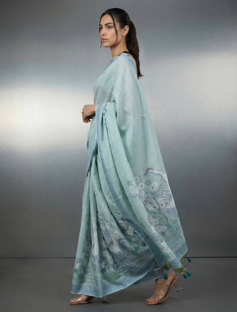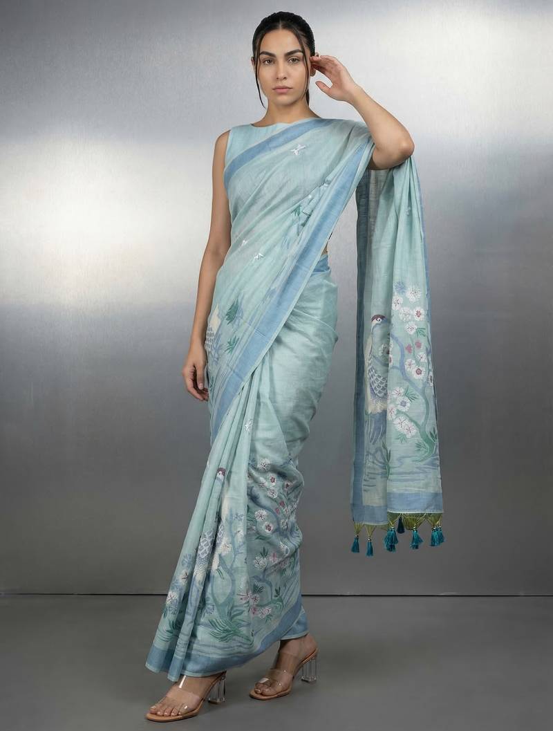| • | Saree | : | Color- Sea Green / Fabric- Linen |