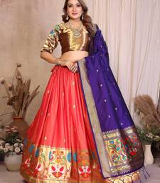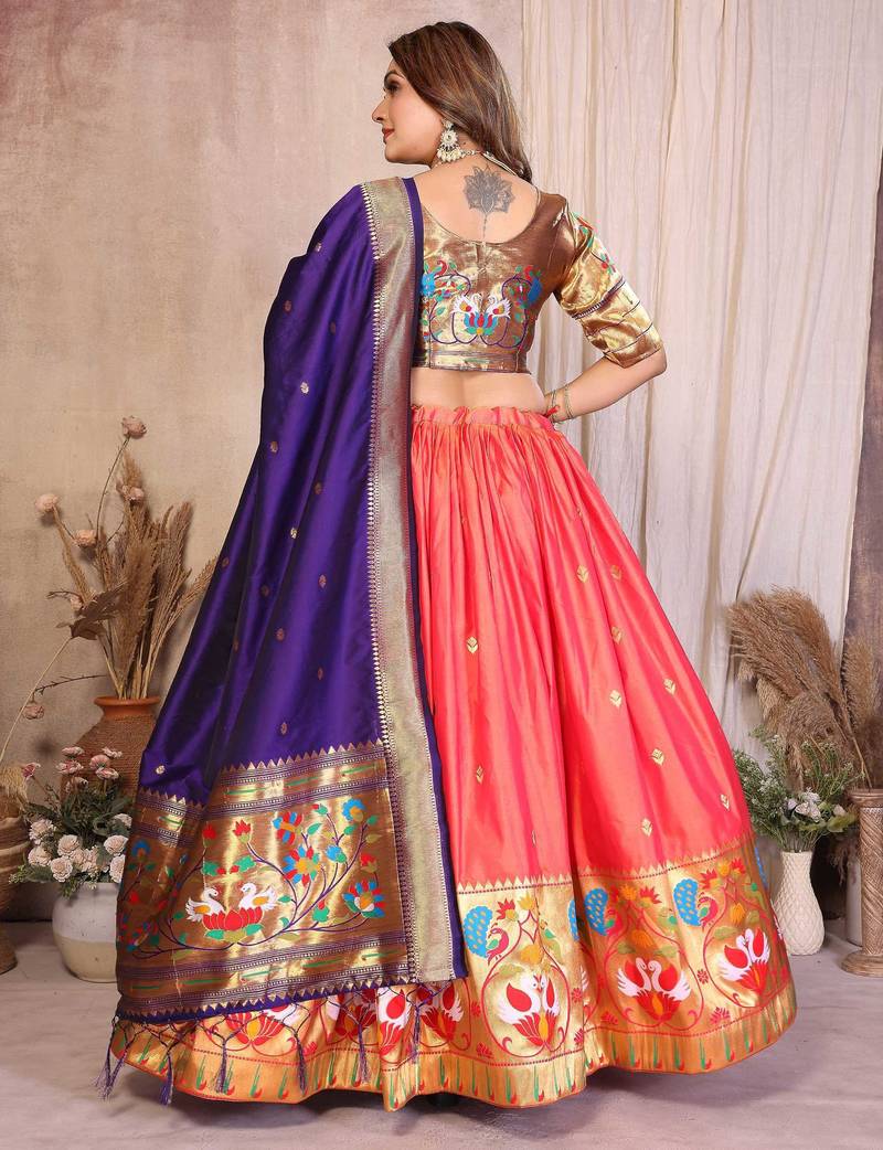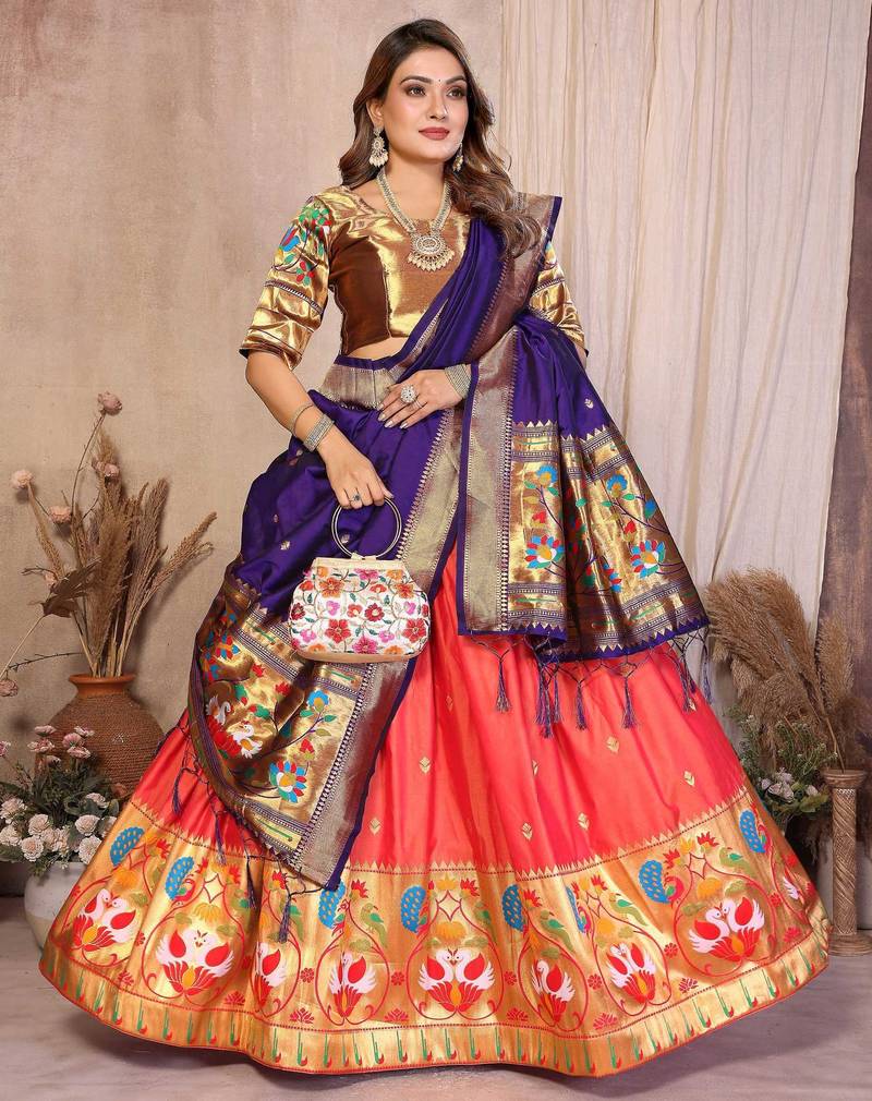Silk lehenga choli with paithani border & teal blue dupatta traditional festive & wedding wear lehenga set for women