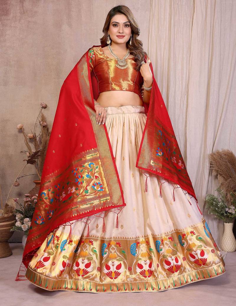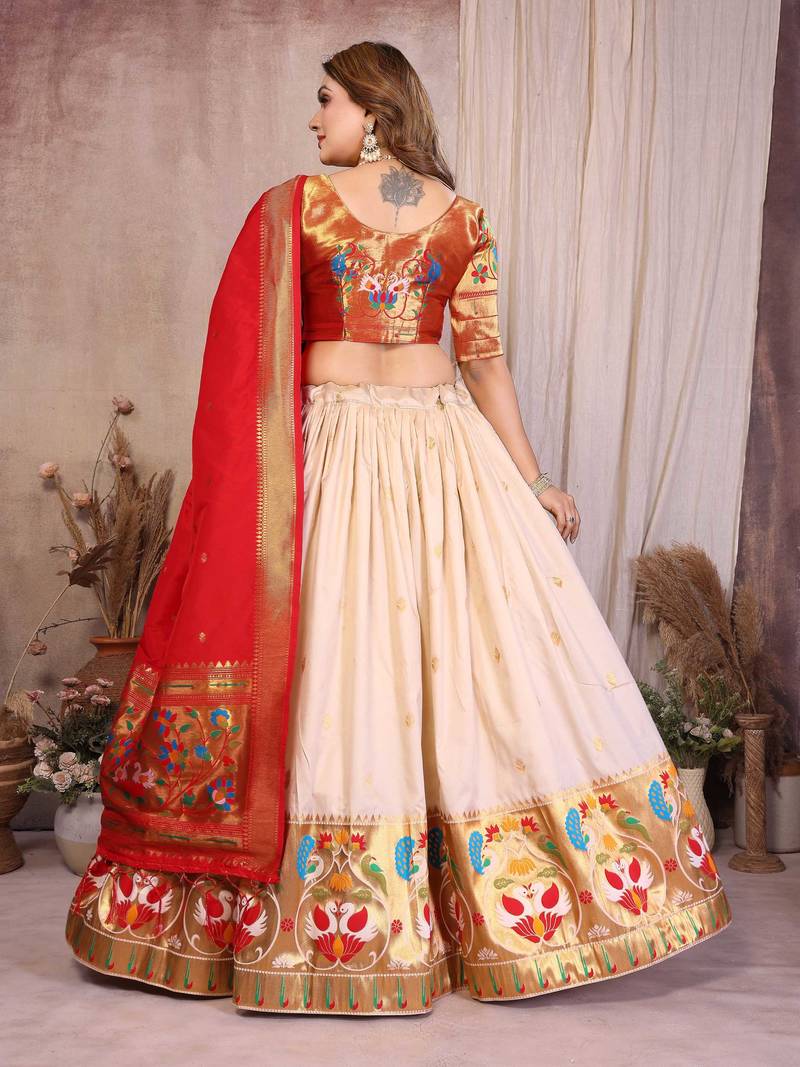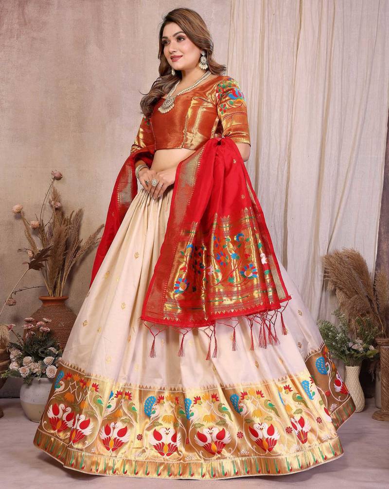 | Product Description | Step Into Timeless Elegance With This Stunning Silk Lehenga Choli Set, Beautifully Designed With A Traditional Paithani Inspired Border Featuring Vibrant Peacock And Floral Motifs. The Rich Blouse With A Lustrous Finish Adds A Royal Touch, While The Flowing Lehenga Offers Comfort And Grace. Paired With A Contrasting Dupatta Adorned With Zari Weaving, This Ensemble Perfectly Blends Heritage And Modern Style. Ideal For Weddings, Festive Occasions, And Cultural Celebrations, This Outfit Brings Out A Regal Charm. Pair It With Statement Jewelry To Create A Captivating And Sophisticated Ethnic Look. |