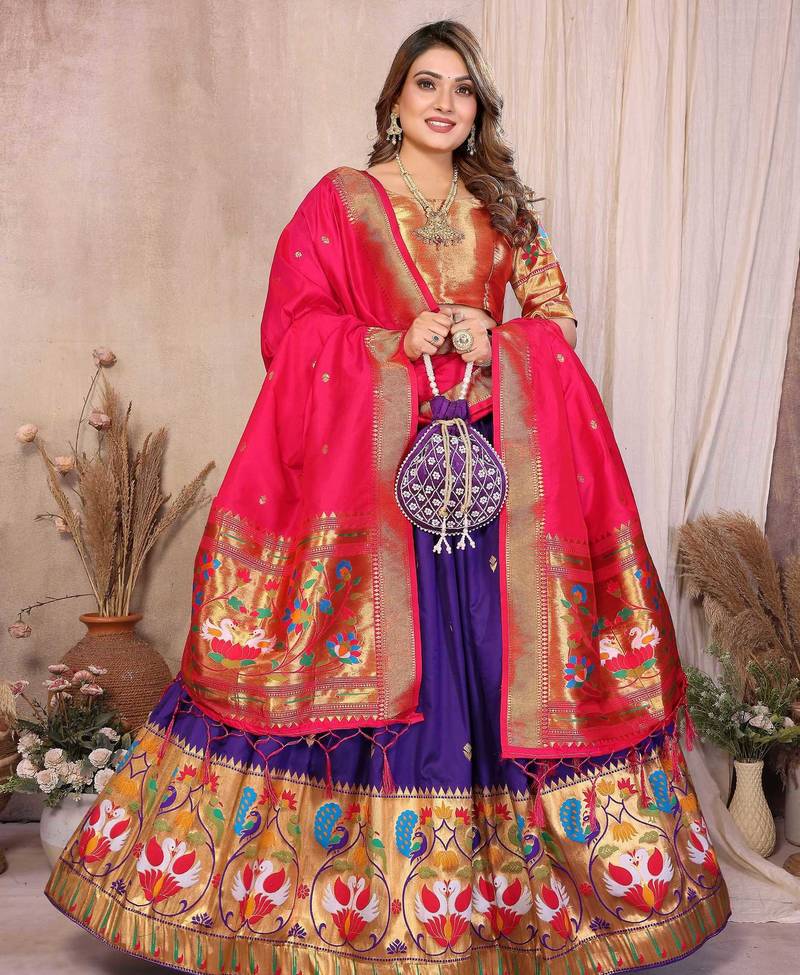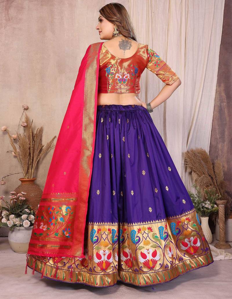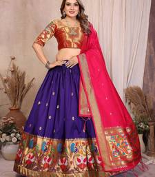 Silk lehenga choli with paithani border & teal blue dupatta traditional festive & wedding wear lehenga set for women