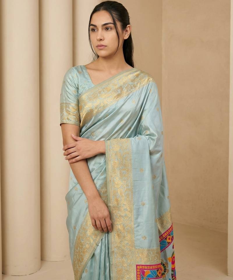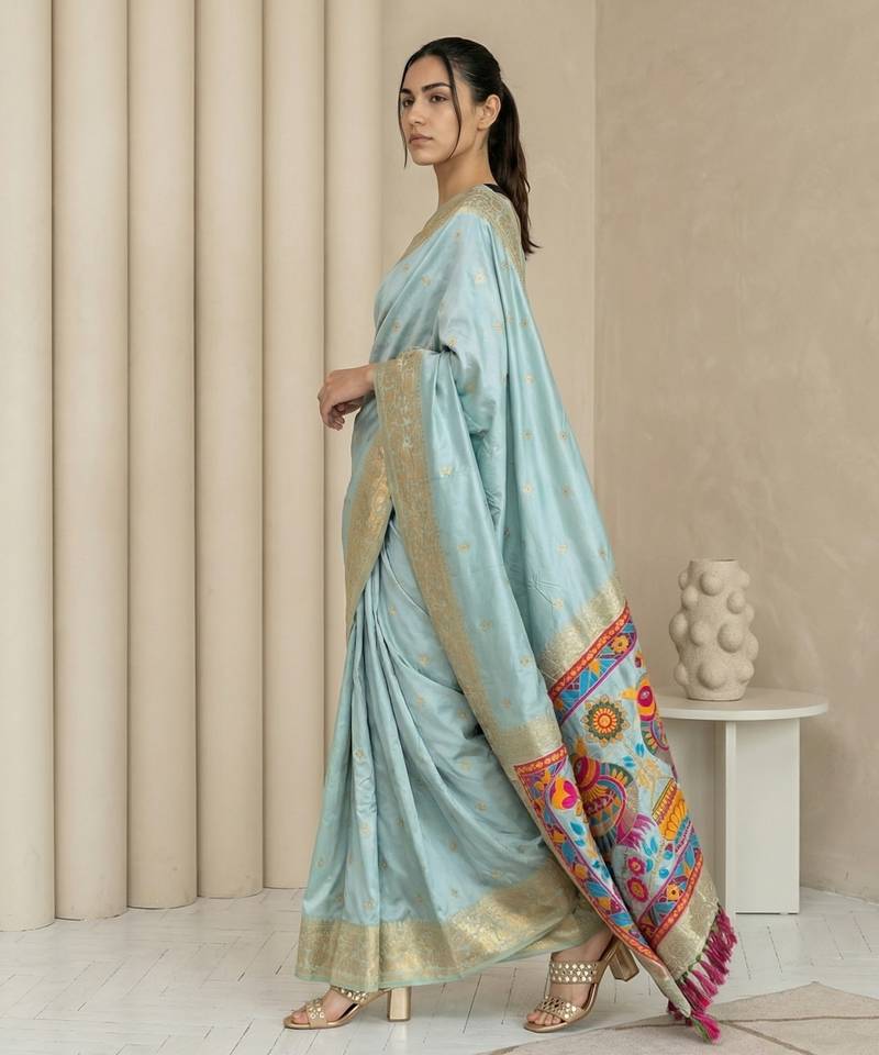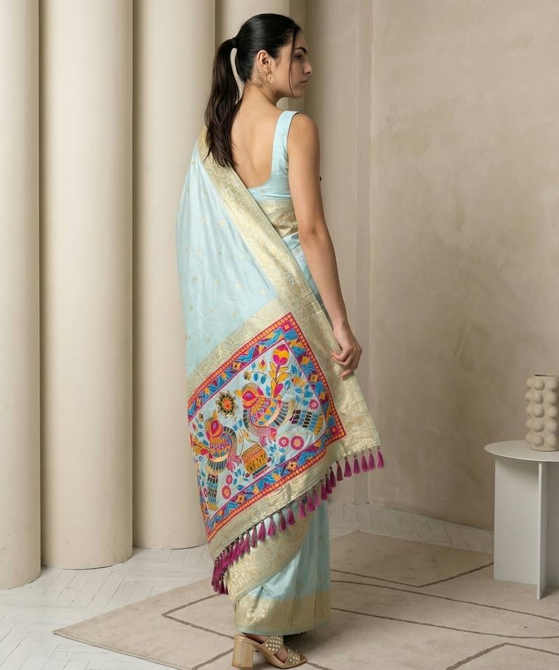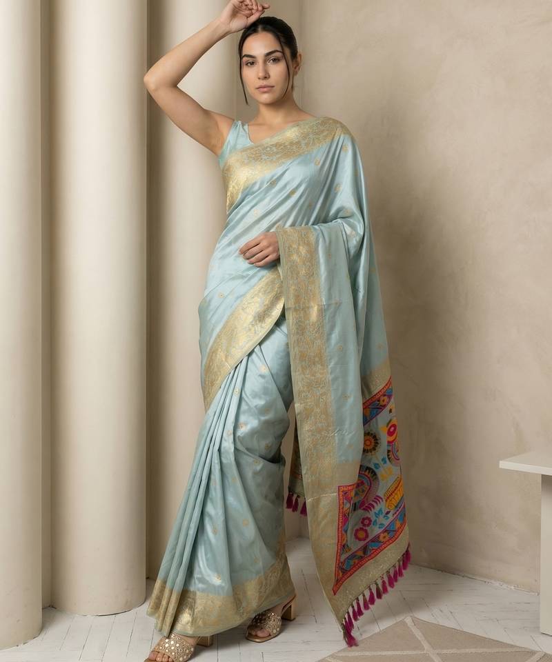 | Product Name | Sky Blue Pallu Woven Zari Buti & Traditional Motifs Work Silk Blend Fabric Traditional Festive Style | |