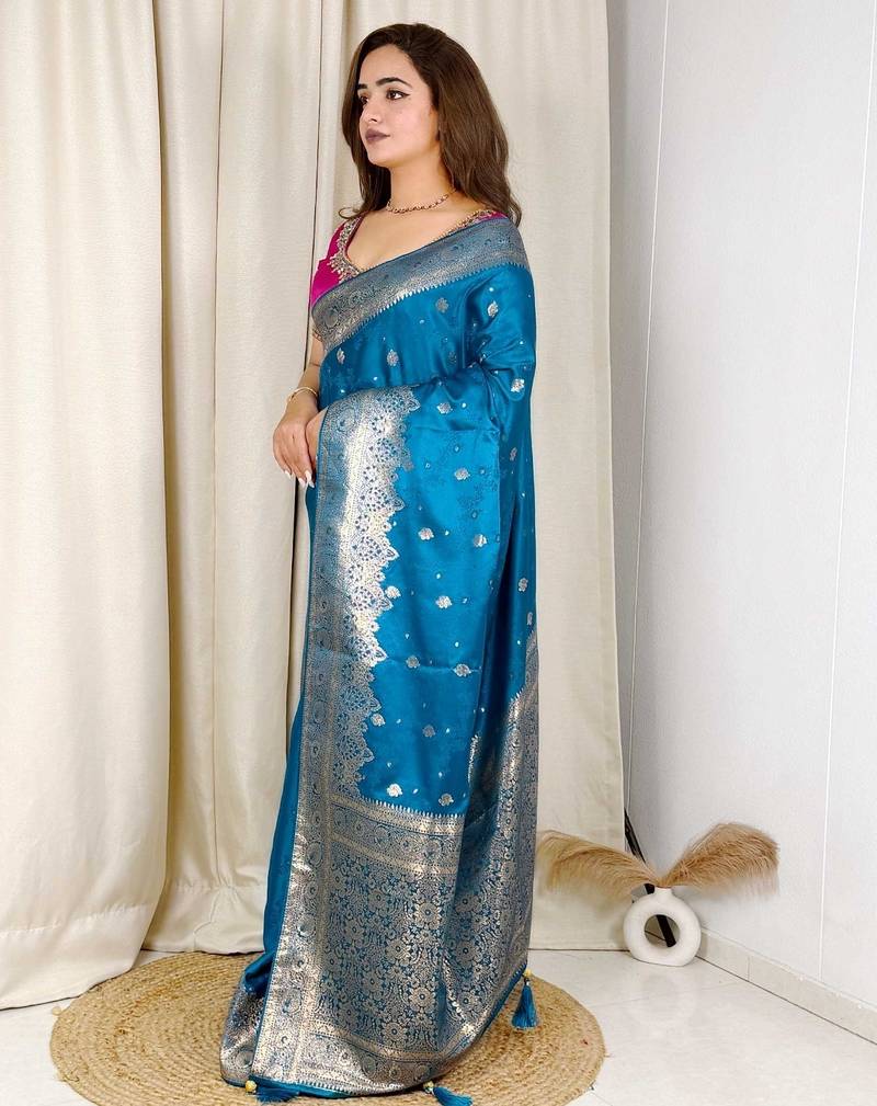 | Product Name | Teal Banarasi Satin Silk Zari Weaving Saree With Embroiderd Blouse Piece | |