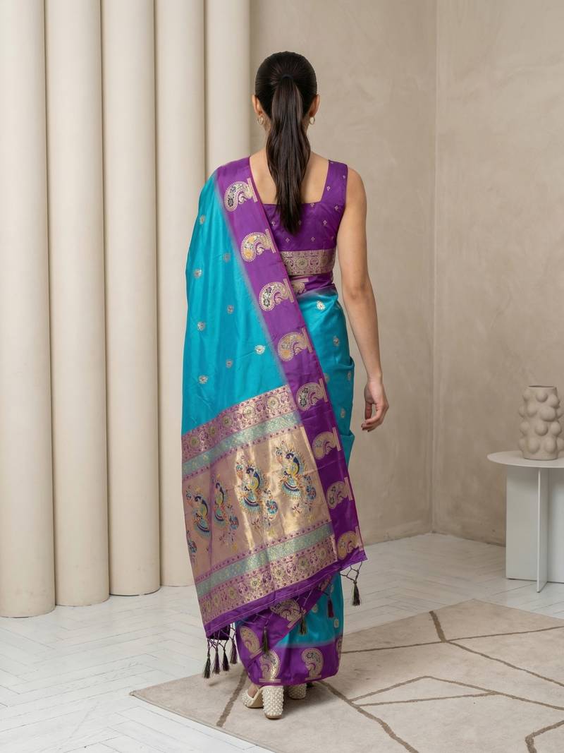 | • | Saree | : | Color- Teal / Fabric- Paithani Silk |