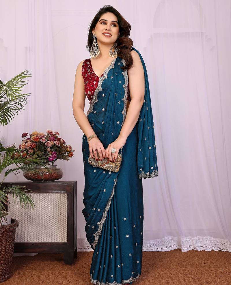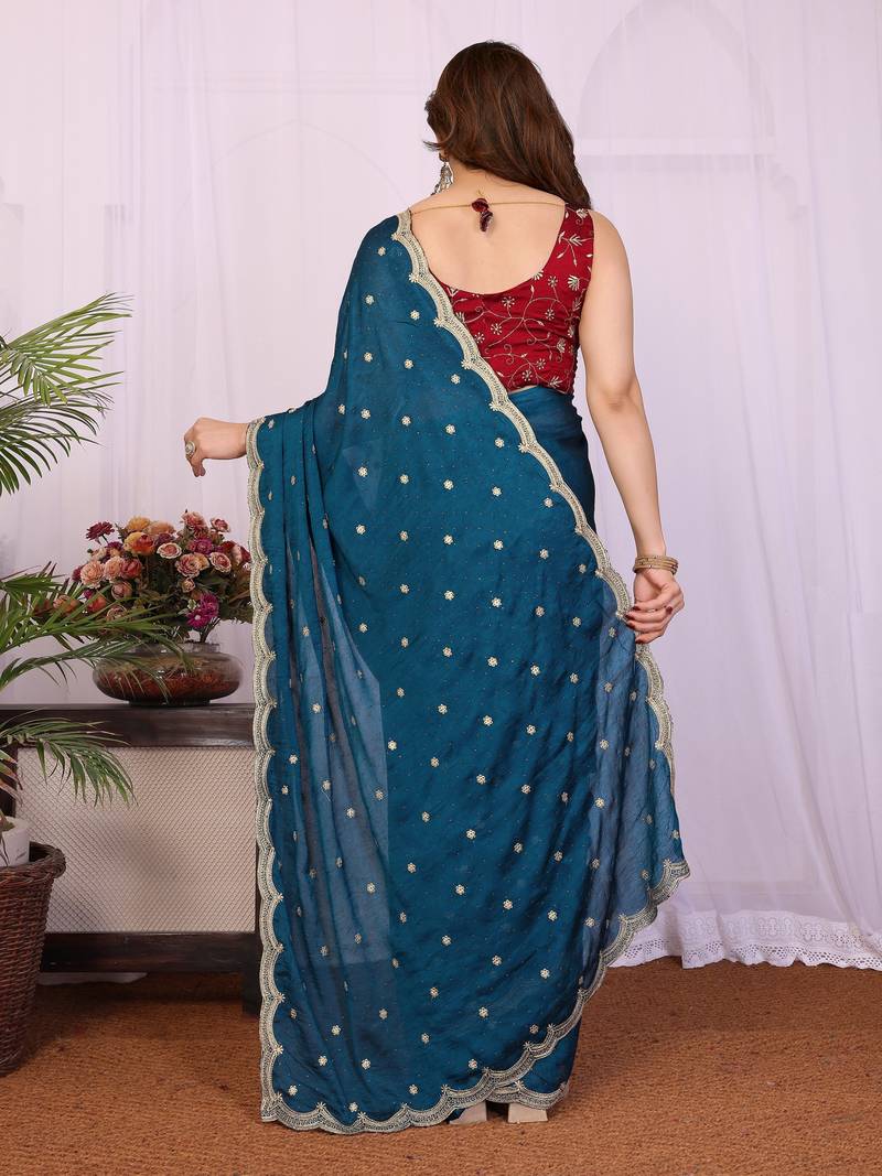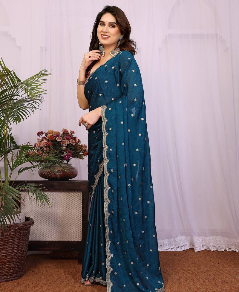 | Product Name | Teal Soft Silk Crush Saree With Sequence Embroidery Work And Contrast Blouse Piece | |