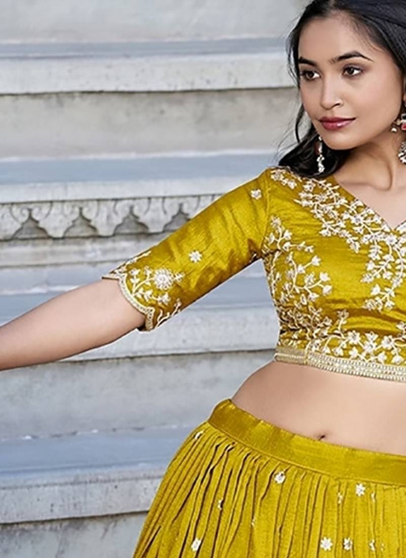 | Product Description | Mustard Chinon Embroiderd Semi Stitched Lehenga Choli With Dupatta |