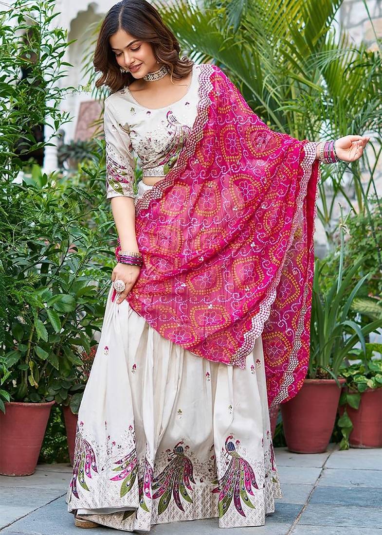 | Product Description | Chinon Print And Embellished Semi Stitched Lehenga Choli With Dupatta |