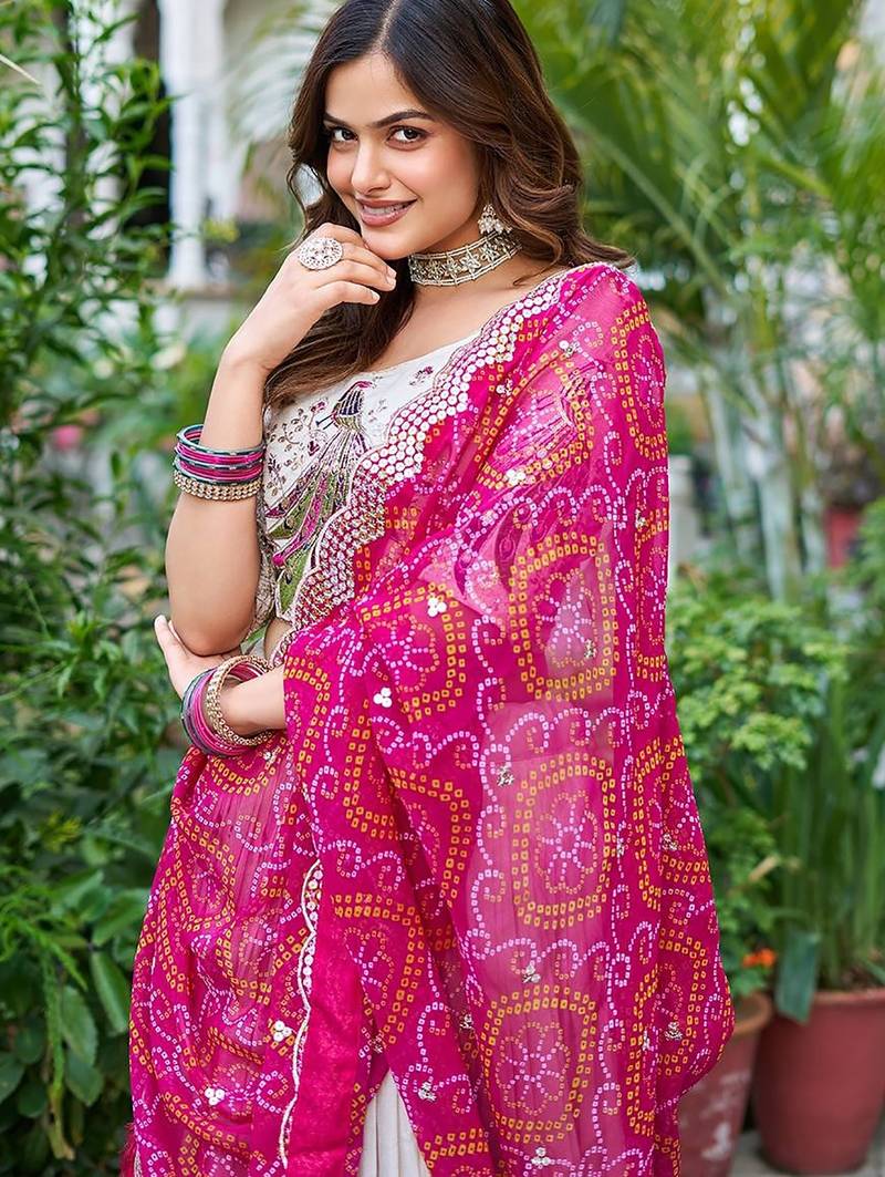 | • | Dupatta | : | Color- Rani Pink / Fabric- Georgette |